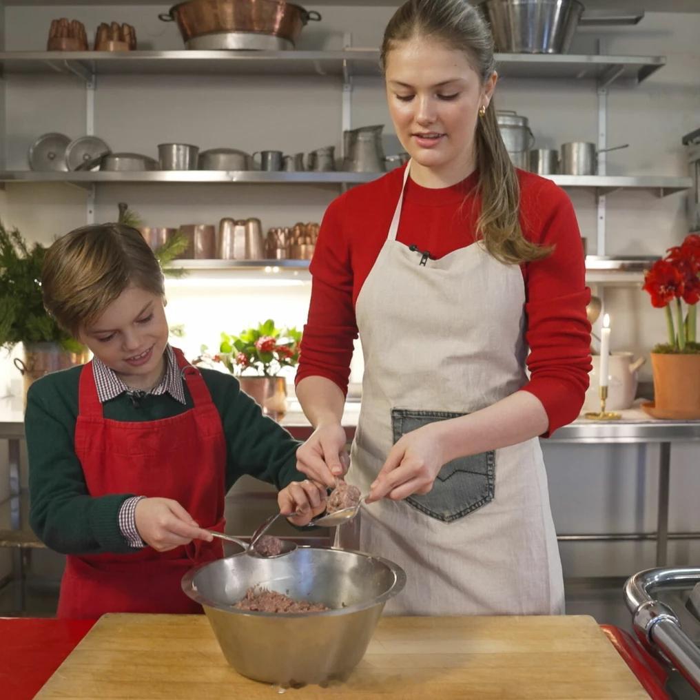 大概前一段时间,瑞典王储维多利亚公主带着一双儿女艾斯特和奥斯卡在瑞典电视台拍摄的王室年度纪录片出镜,具体内容是做圣诞餐,包括肉丸和小饼干啥的