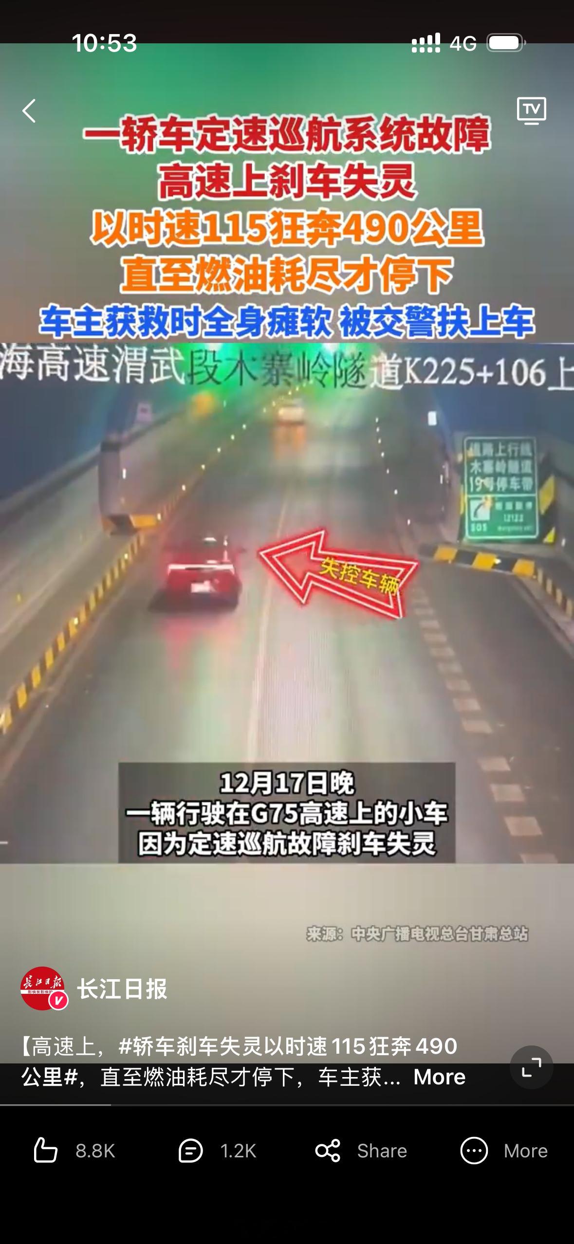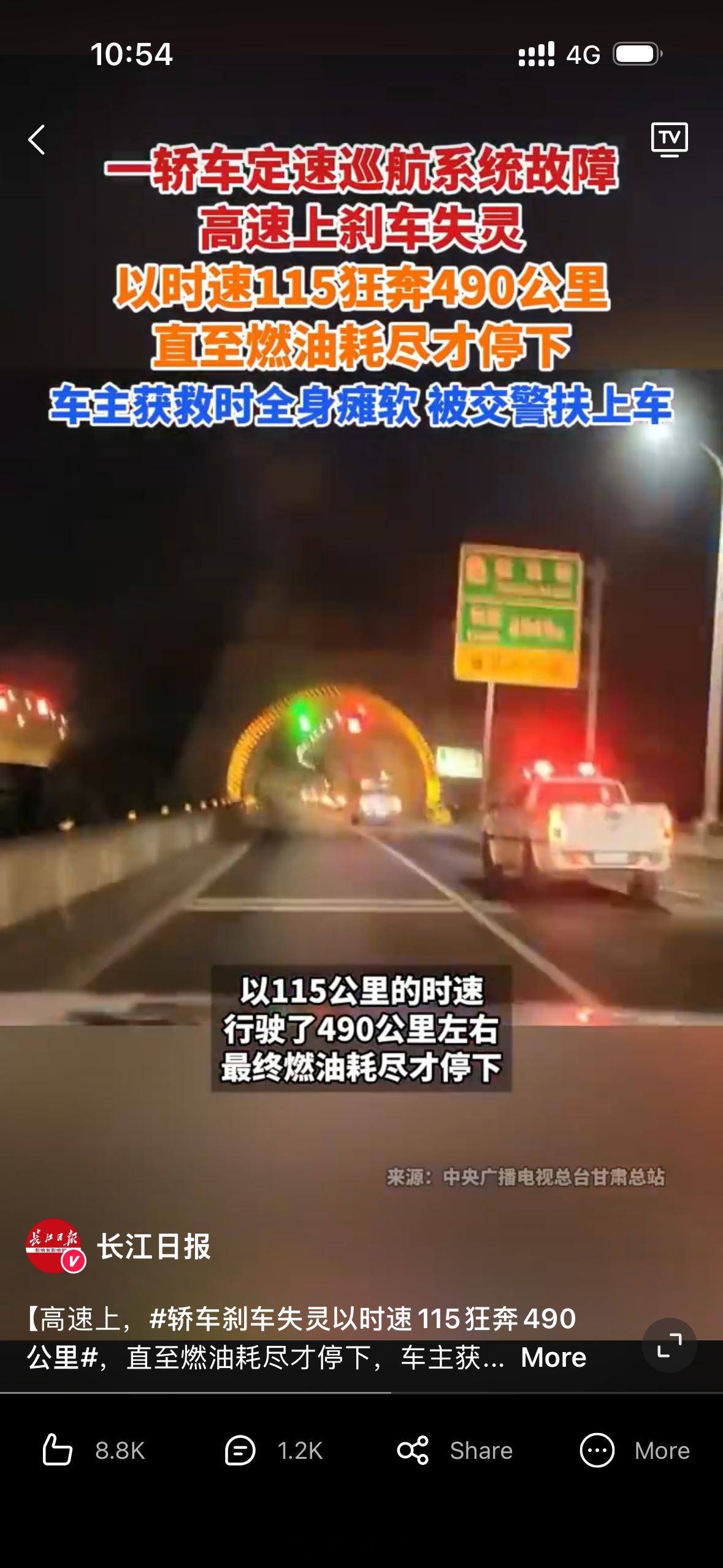 轿车刹车失灵以时速115狂奔490公里 490 公里什么概念?上海到南京才 300 公里…为什么这辆车踩刹车定速巡航不会退出?42how