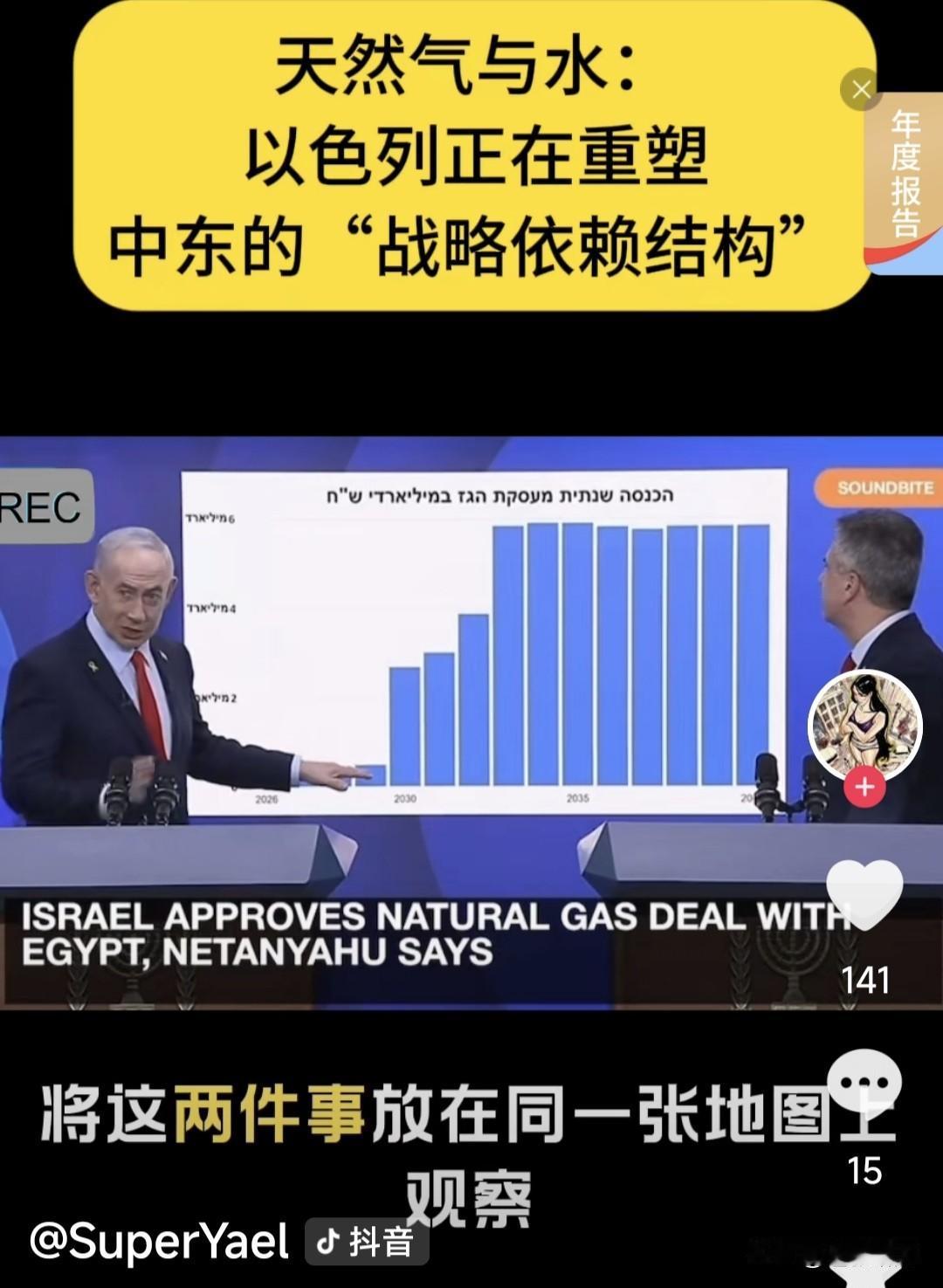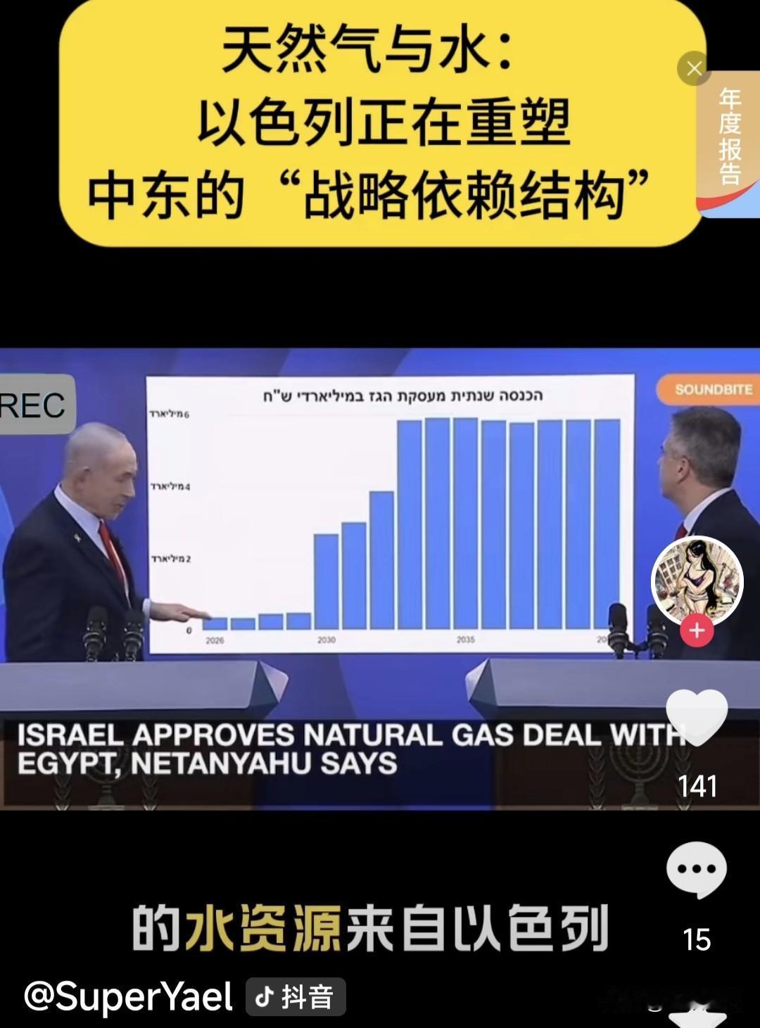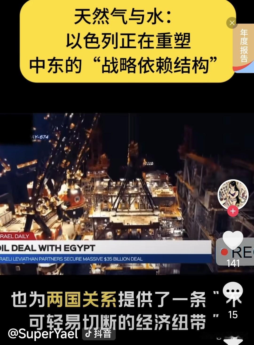 以色列向埃及出口300亿美元天然气,为两国关系加上保险栓!同时向约旦供应10%饮