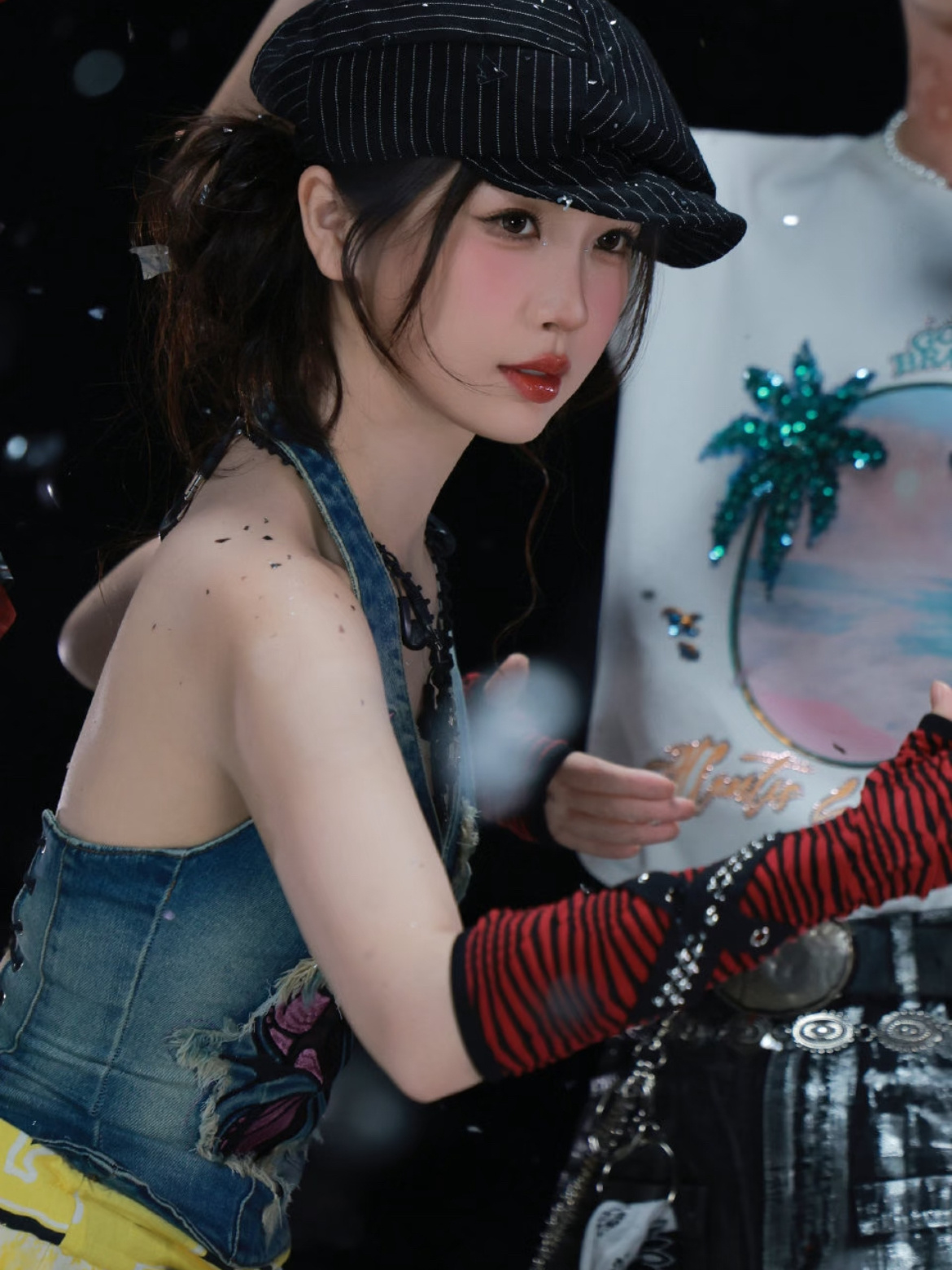 吴艳妮在成都穿着短裤大腿看起来很粗壮,表情自信又张扬