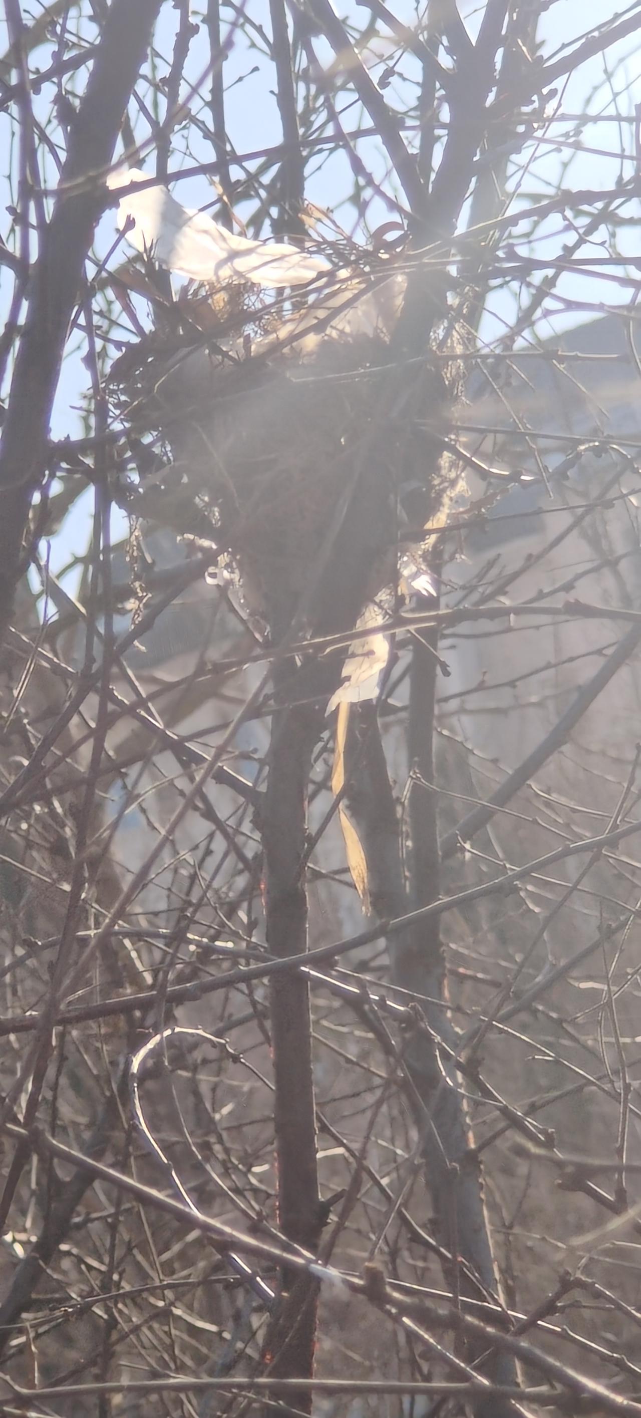 周边环境好了,鸟儿多起来了 春到隐枝头,冬来见鸟巢。 偶看云端飞,时闻叶底笑。 这几个鸟窝是我周边山路、小区广场、居民楼前的鸟窝,它们选择的地方距离地面不高,但是隐藏在灌木当中。冬天来了,树叶的落尽,漂亮的鸟窝就显示出来了。 有人提议要用棍子把它捅出来,看一看内部结构,被我制止了。尽管这个鸟巢明年春天可能鸟不会再用了,但我还是觉得它的故居还是留着好。 一切表明周边环境好了,各种鸟类儿多起来了。小区周边体型最大的鸟类有三种。黑喜鹊,灰喜鹊和八哥。我们周边的八哥可能是大连独有的,能往外拓展了一下,但是估计我们这里是中心。因为20年前报纸上报道,这八哥是大连的科技工作者培育出来放飞的,放飞地点就是我们小区。获得了国家科技三等奖。经常看到谁谁家那个抽油烟机烟囱里面被八哥占领了。等哪天有时间我照几只八哥给大家看一看。 每当看到了这些鸟窝,我的耳边就会响起那鸟声,我不知道它是哪一种鸟?但那春天孕育出来的鸟儿已经成为翱翔天空的精灵了吧。