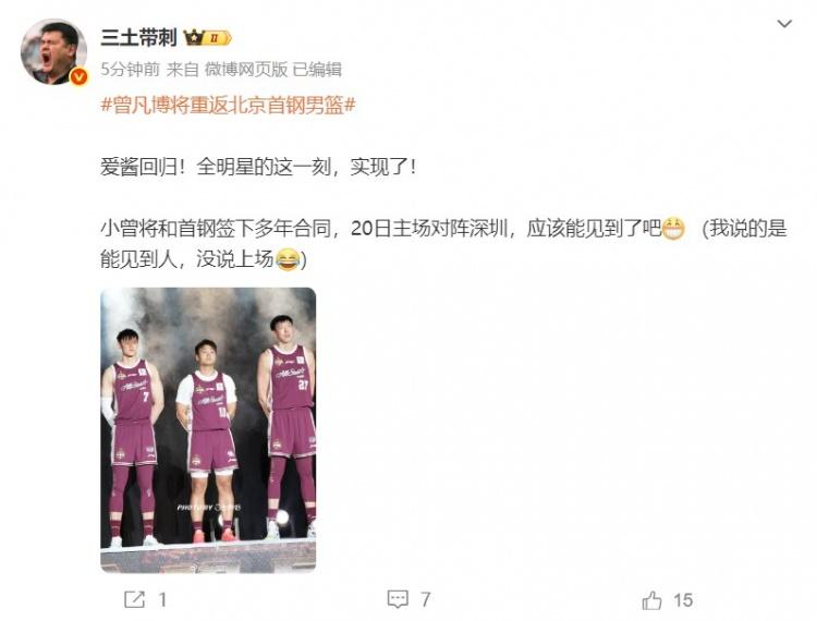 曾凡博终于要回来,北汽离不开他的活力和机动性,NBA有些太虚无缥缈 现在才传来曾凡博要回归北汽的消息,对一般球迷而言,年薪和年限无关痛痒,倒是他能中和北汽的暮气,这就已经达到大家的期望值了。曾凡博、崔永熙、张镇麟和郭昊文,都是机动性很强,当然还不如迪亚诺,也是比赛好看的催化剂。 其实今年出国的一些年轻人,最终都不大可能打NBA,看杨瀚森被球迷各种嫌弃,年轻球员太眼高手低没用,脚踏实地不好吗? 曾凡博
