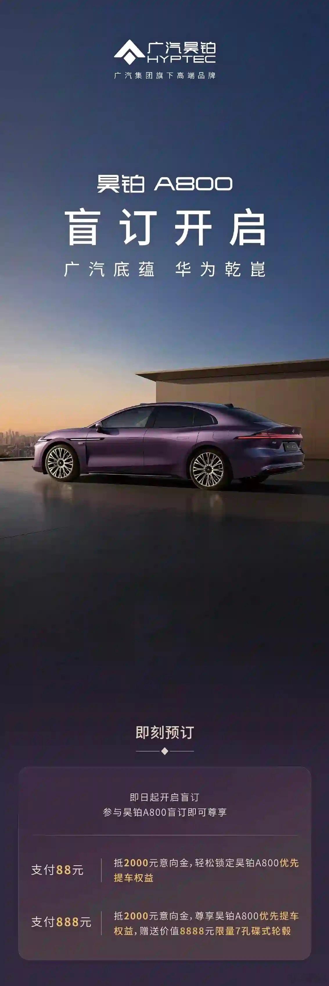 昊铂A800开始盲订了,中大型1.5T增程轿车,带华为ADS 4+鸿蒙座舱5,你