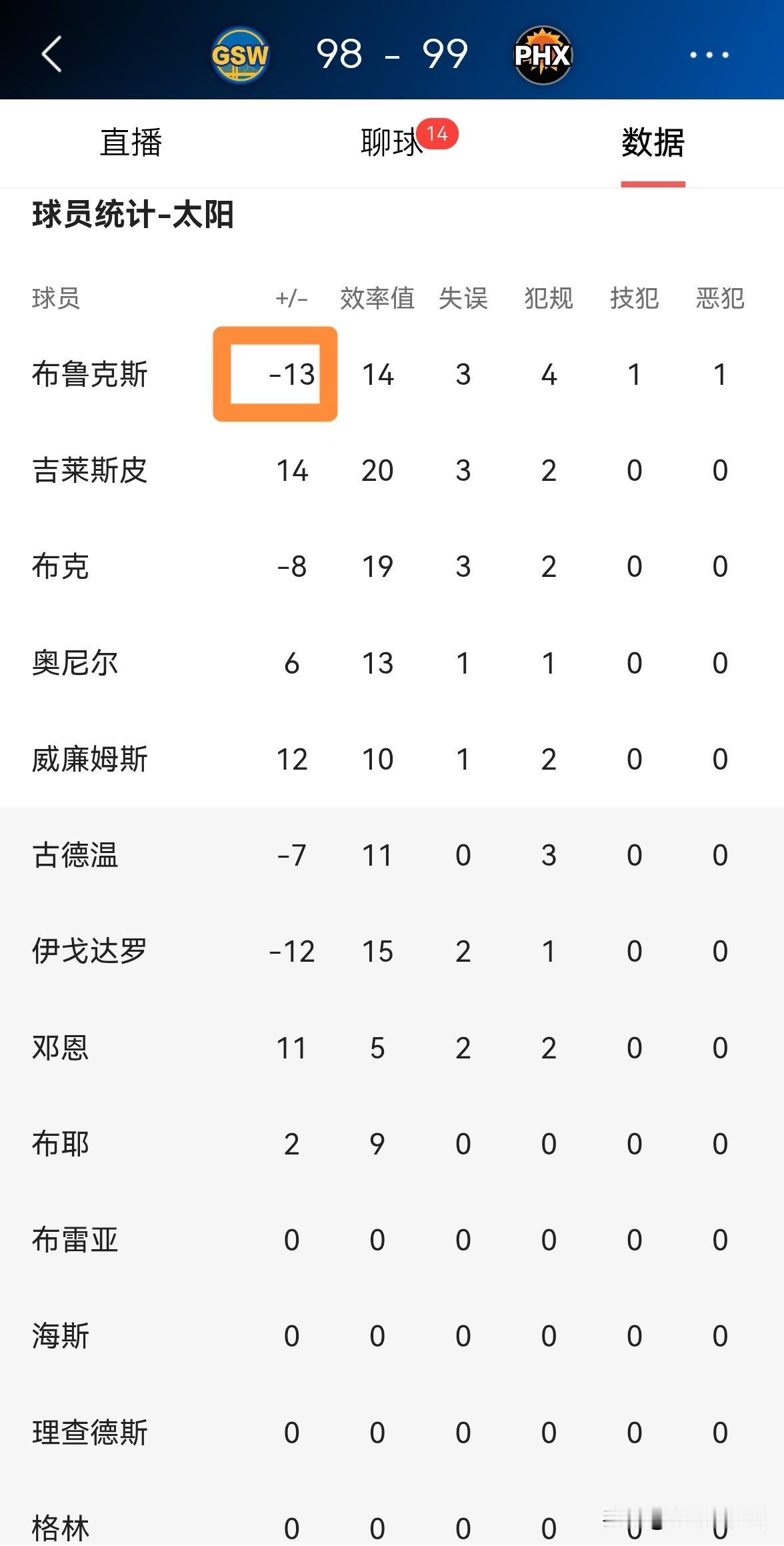 就因为他恶犯了库里?库里正负值-12都没见你拿出来说呢?13投3中