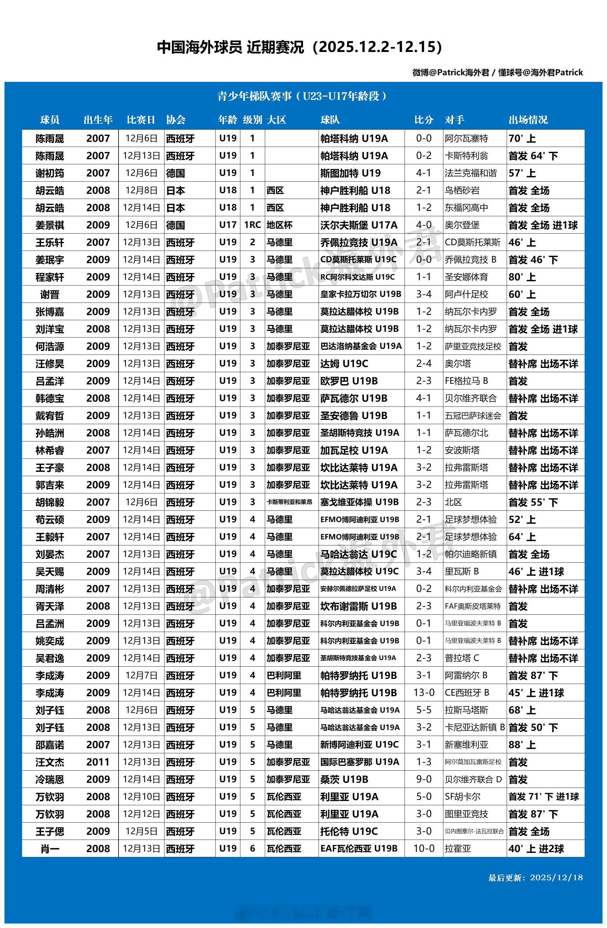 留洋周报 海外球员比赛一览 (2025年12月2日-12月15日)