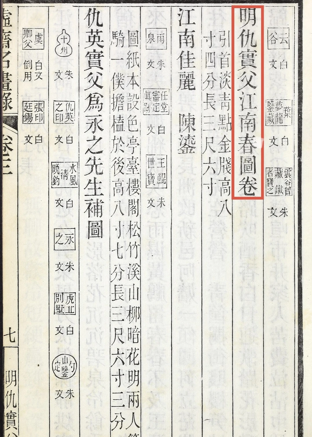 仇英《江南春图》曾由王氏“话雨楼”三代珍藏,期间经金农过眼,后由“过云楼”顾文彬珍藏并著录于《过云楼书画记》,称为“仇画第一”;传至其孙顾麟士后,转藏于庞元济处,著录于《虚斋名画录》,列为“虚斋至精之品”。然而,此画在捐赠后,却被定为伪作。这一结论与其辉煌的传承著录形成了巨大反差,原因究竟何在?欢迎大家留言讨论!