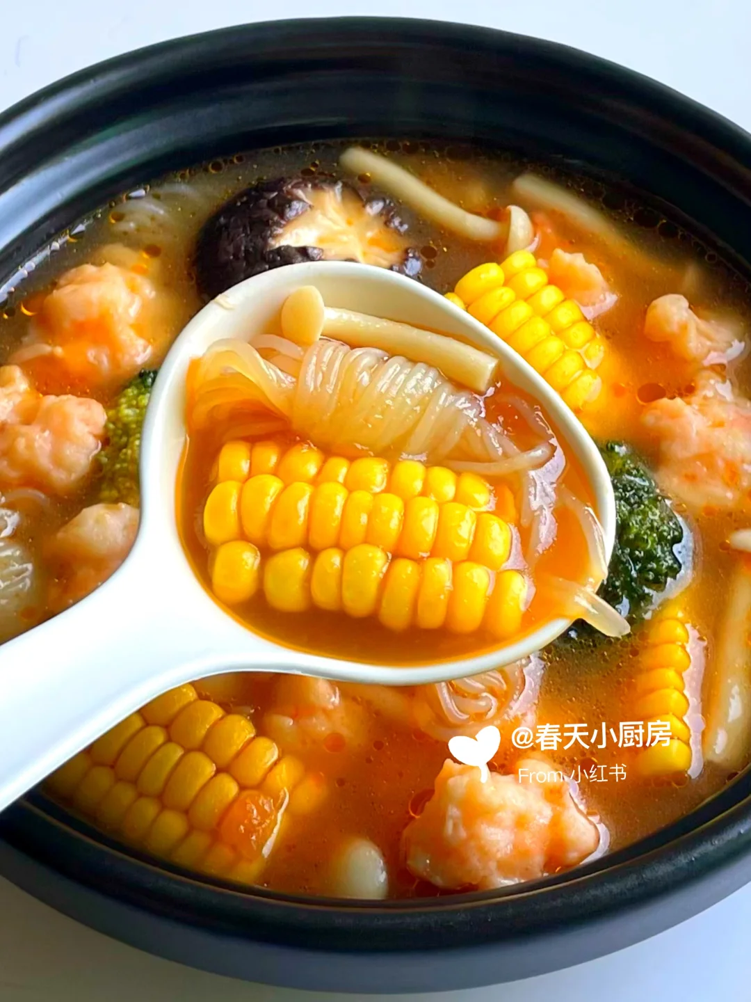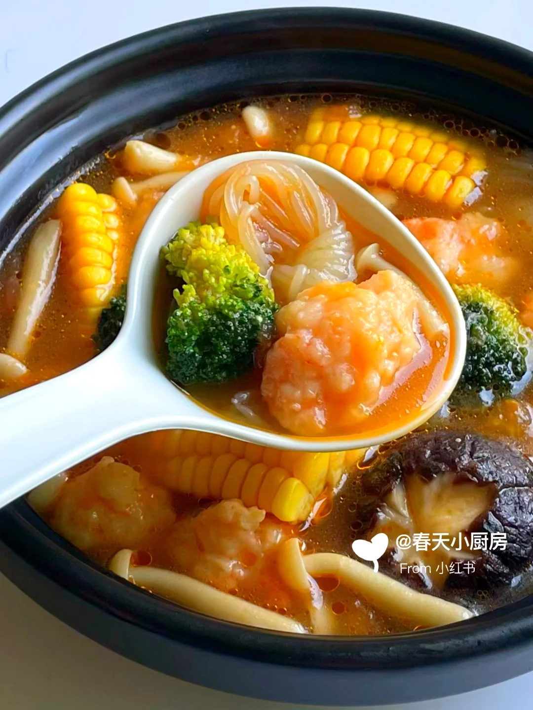 做菜我是认真的 🌈🌈 秋冬时节,适合在家喝暖乎乎的汤锅,这道虾滑时蔬菌菇汤,食材丰富,口感层次分明,酸甜开胃,低脂又营养,全家人都适合喝,快试试~