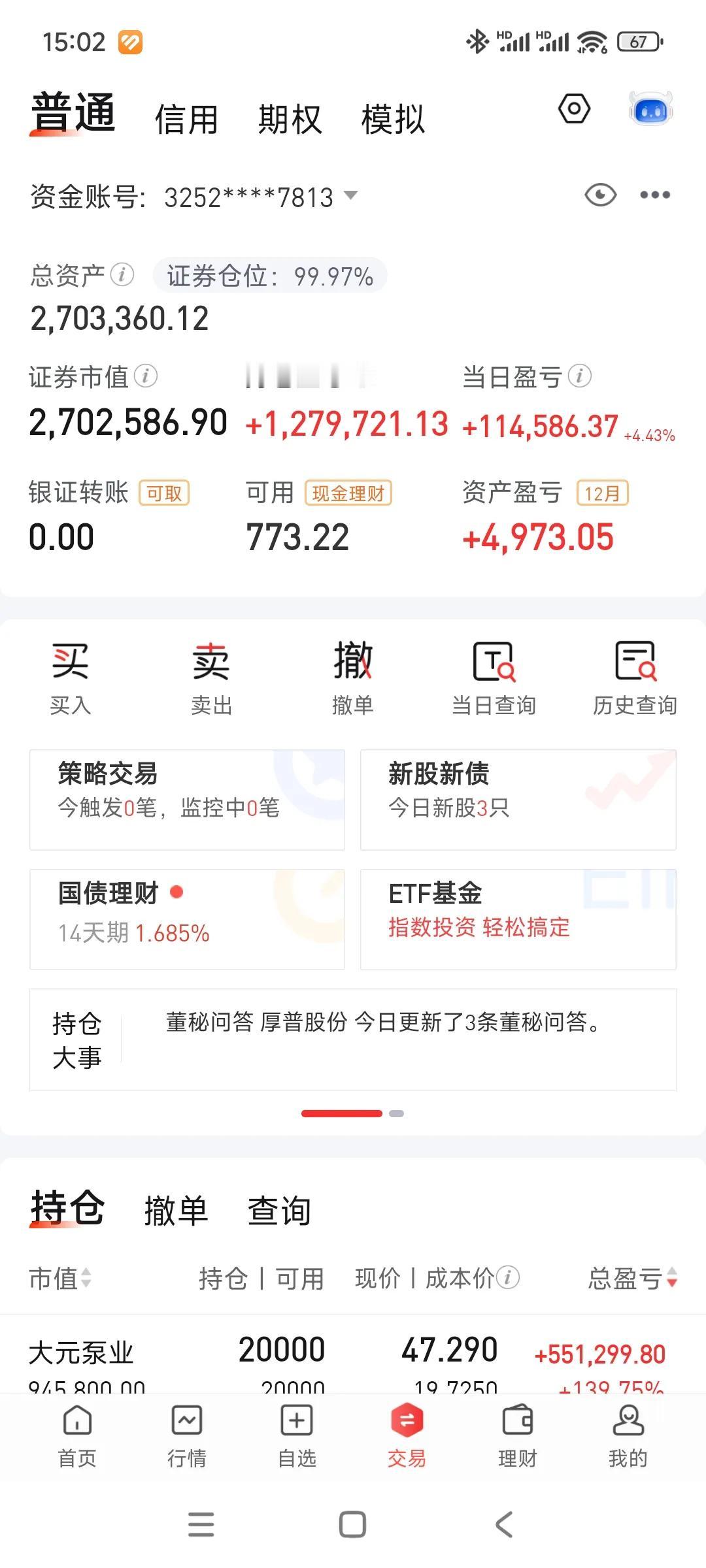 今天大肉,账户回到270,大元涨停但是没有带动板块。