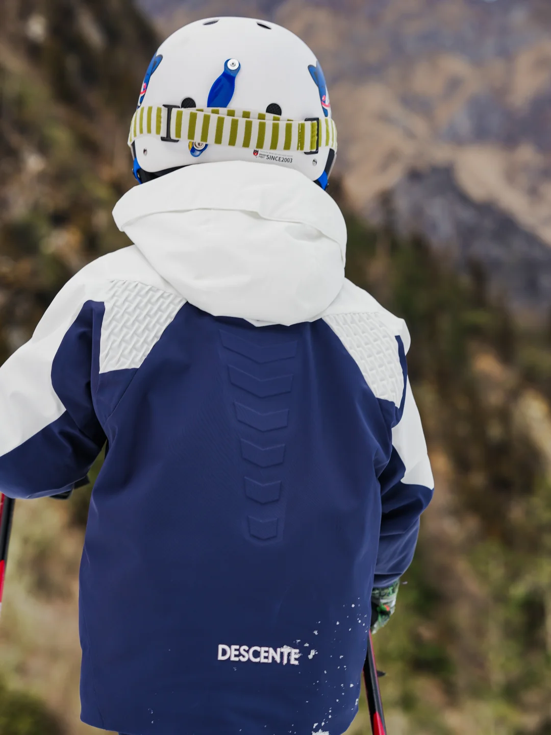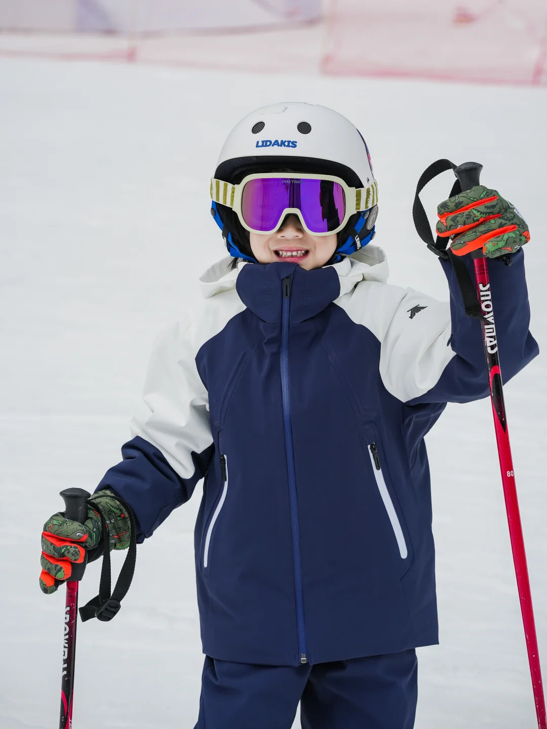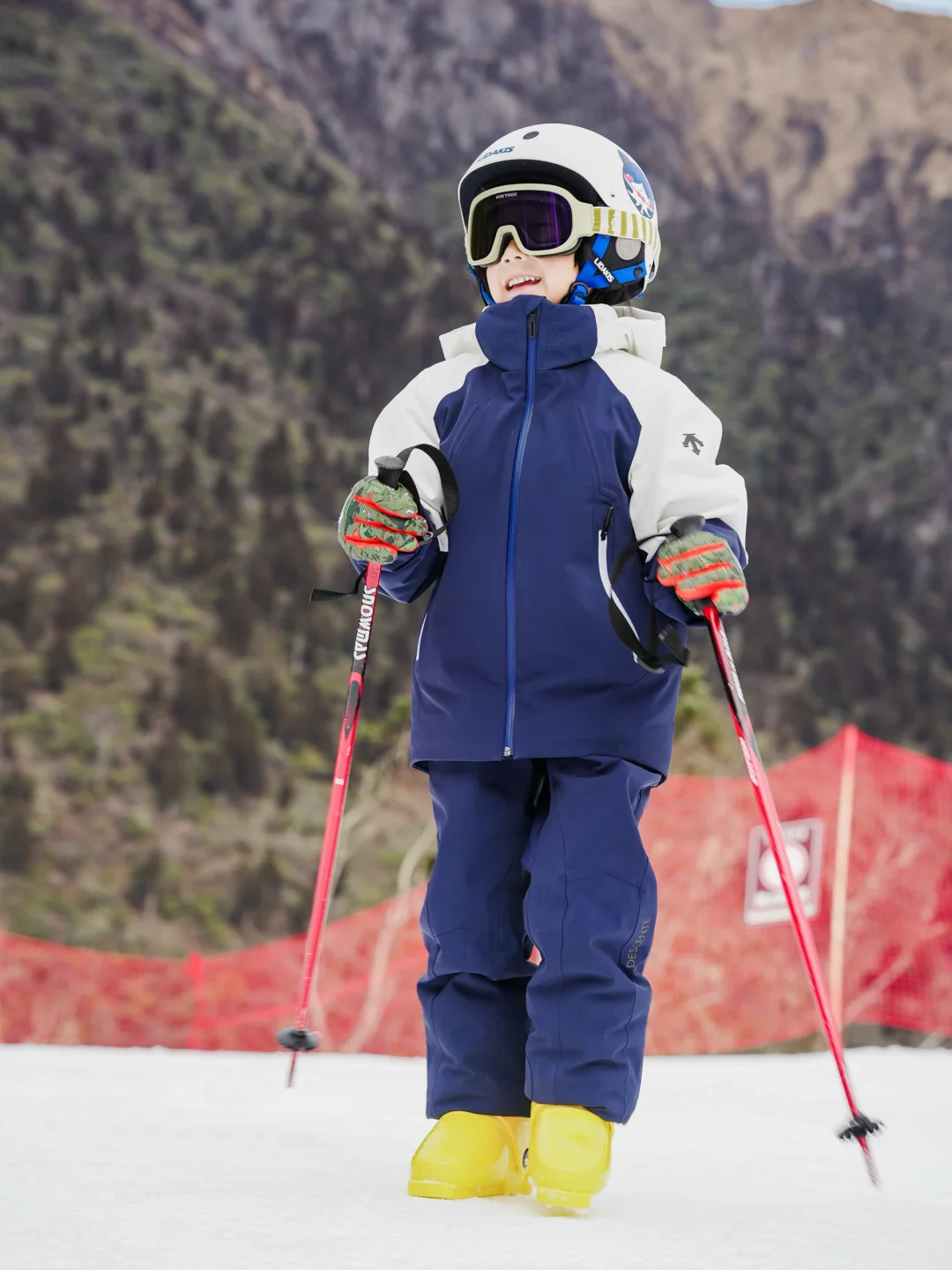 这次蛋挞穿的是迪桑特双板滑雪服,是我多次带娃滑雪累积经验后,给他挑选的专业儿童滑雪服❄️