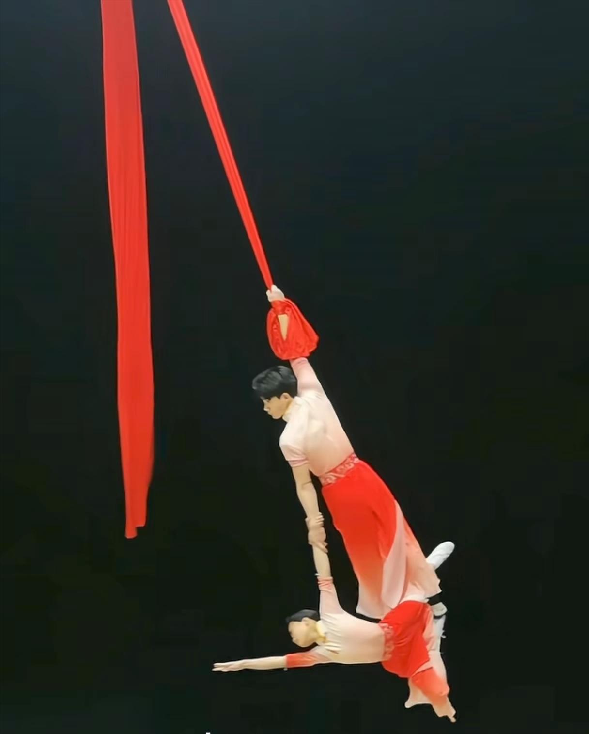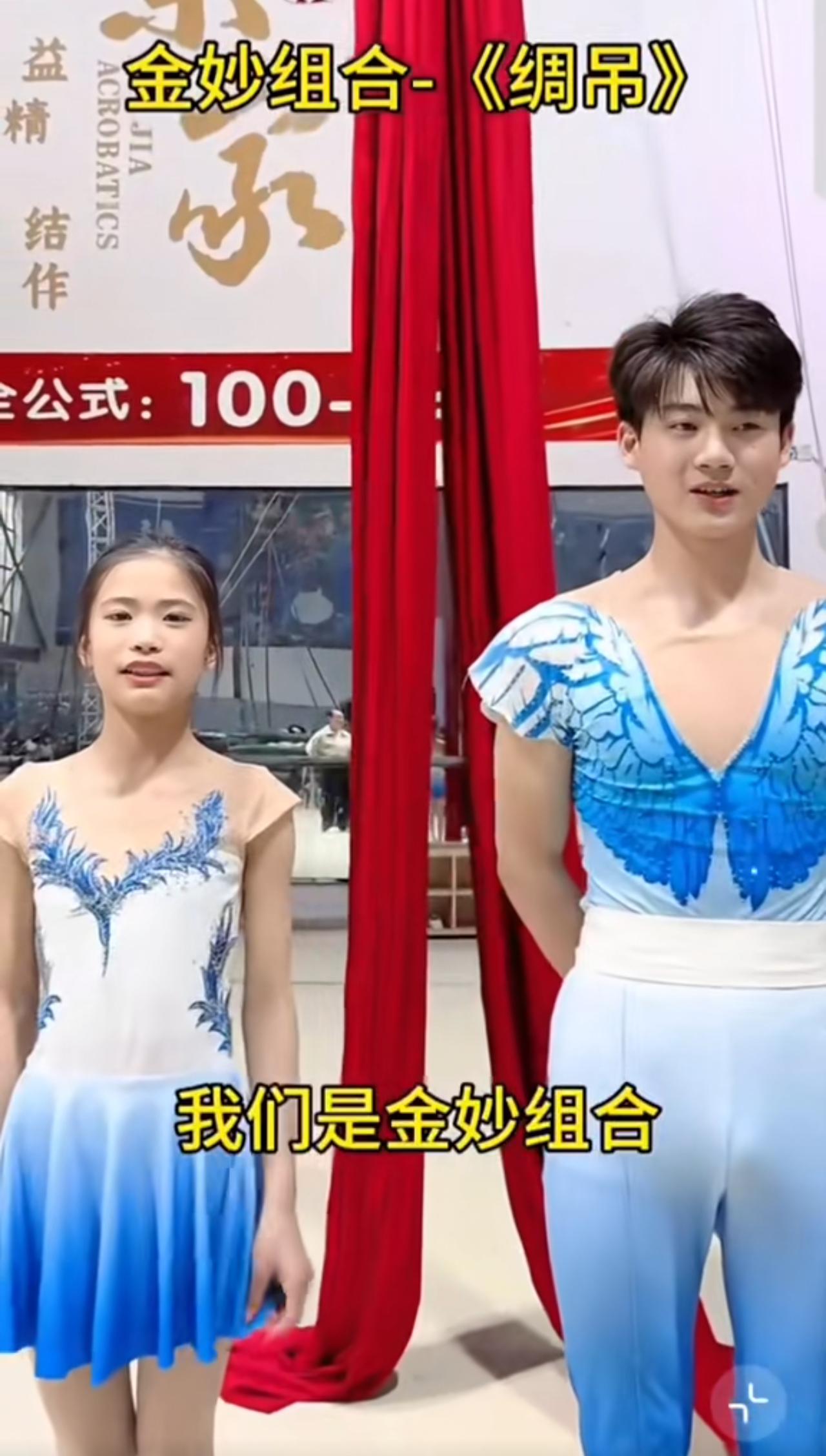 当17岁的金斗身着白色短袖黑色长裤,带着13岁的妙冉在空中再次飞翔的时候,我的眼睛湿润了! 这两个练杂技的少年是来自河南周口的金妙组合,在今年4月份曾经登上过央视网、新华社等诸多新闻媒体。 他们的出现,改变了传统练杂技的惨苦卖艺,而是凭借流畅优美的绸吊表演,给人美的享受,感染了许多人。 在《神话》的音乐声中,两个人单手拉着大红色绸吊,在空中时而翻滚,时而飞翔。 他们用身体语言讲述着一个古老的爱情故事,每一个看过的人都说看懂了他们的表演。 两人饰演的是角色中相爱的男女主角,他们虽然年龄不大,但却通过表演,将这个凄美的爱情故事重现在了江湖上。 小女孩起飞时懵懵懂懂,金斗从身后几个大步冲上去腾空升起,向她伸出了有力的臂膀。 随即,两人升入半空,金斗伸手将妙冉直接抱进怀里,两人上身相拥,双腿蜷缩。 随着大回环的旋转,妙果断放下手中的绸吊,只身一人躺在金斗双脚上。 此时此刻,只有金斗的右手紧紧地抓着绸吊,也就是说两人的身体重量全靠他的一只手臂来支撑。 有网友说,两个少年的表演干净利落,男孩阳刚十足,为女孩提供了足够的安全感;女孩则用灵巧柔美的舞姿,展现出故事女主角的破碎与无力感,两人刚柔并济,是练此绸吊的天选之人。 此次,他们王者归来,再次展现出了不凡的实力。 有人说,以他们的实力如能登顶央视春晚,配合韩红演唱《神话》,两人在空中飞舞,那画面真是一眼万年啊! 闪闪发光的金妙组合,自此以后,皆是好运,所到之处皆鲜花盛开!