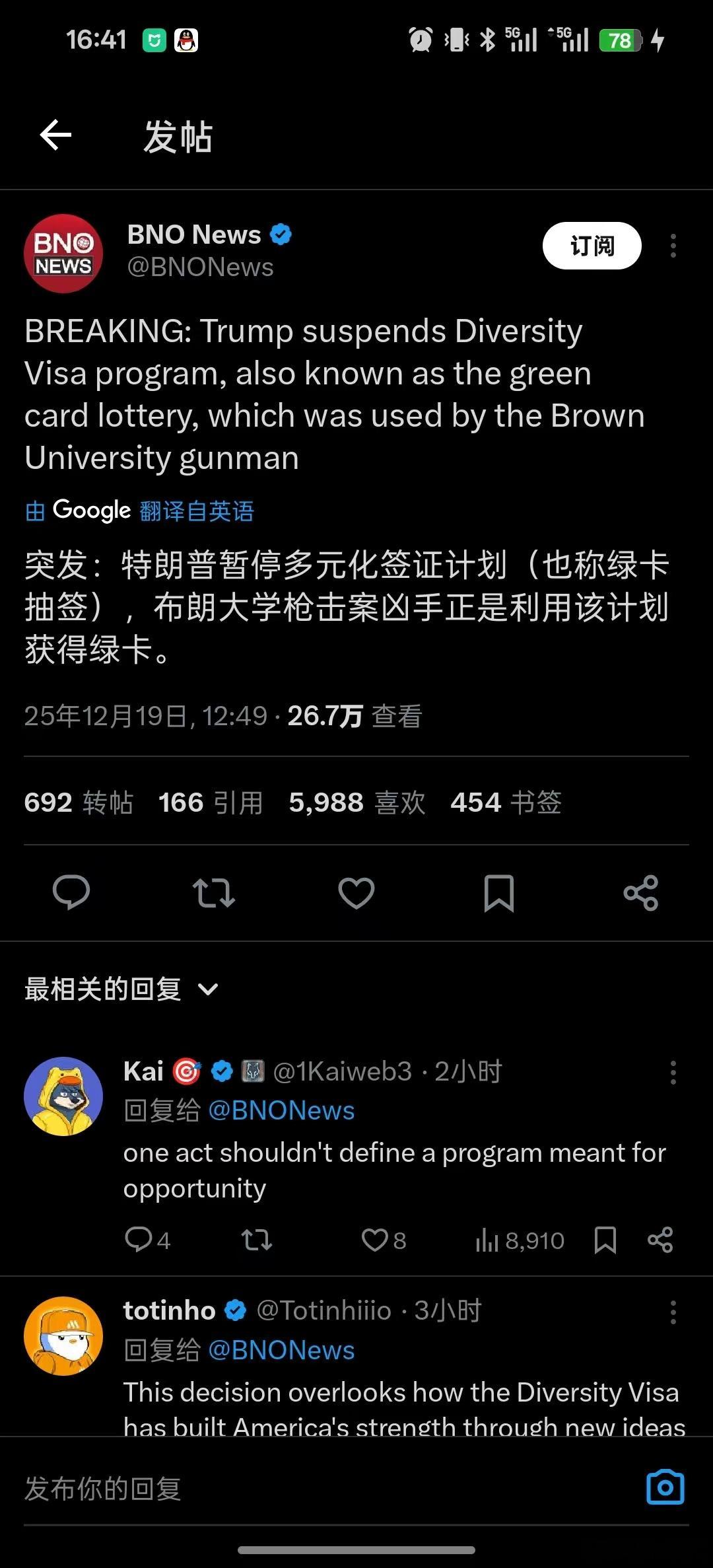 川普又发力了,暂停绿卡签证,因为大学枪击案嫌犯就是这么进来的。