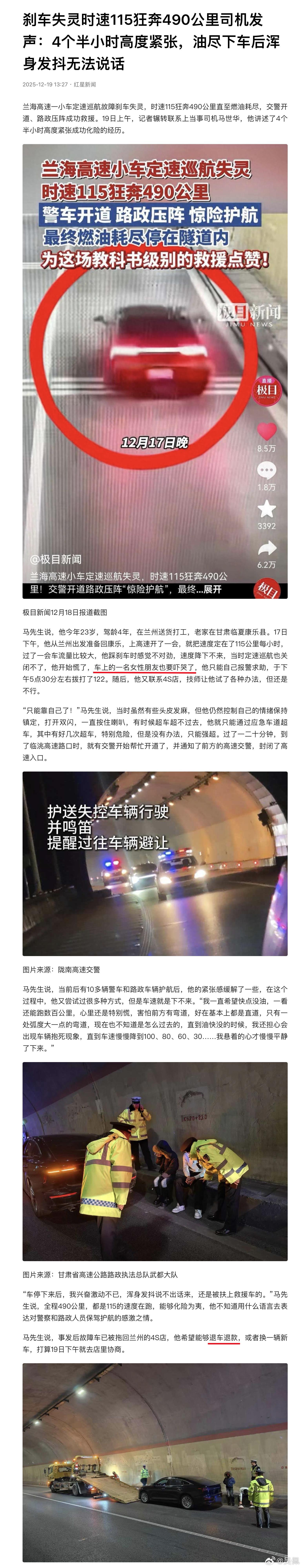 怎么年年都有这种事儿23岁小马的话你信吗?我看到“退车退款”似乎想到了什么……轿车刹车失灵以时速115狂奔490公里发现刹车失灵了怎么办司机开定速巡航追尾后引发连环撞