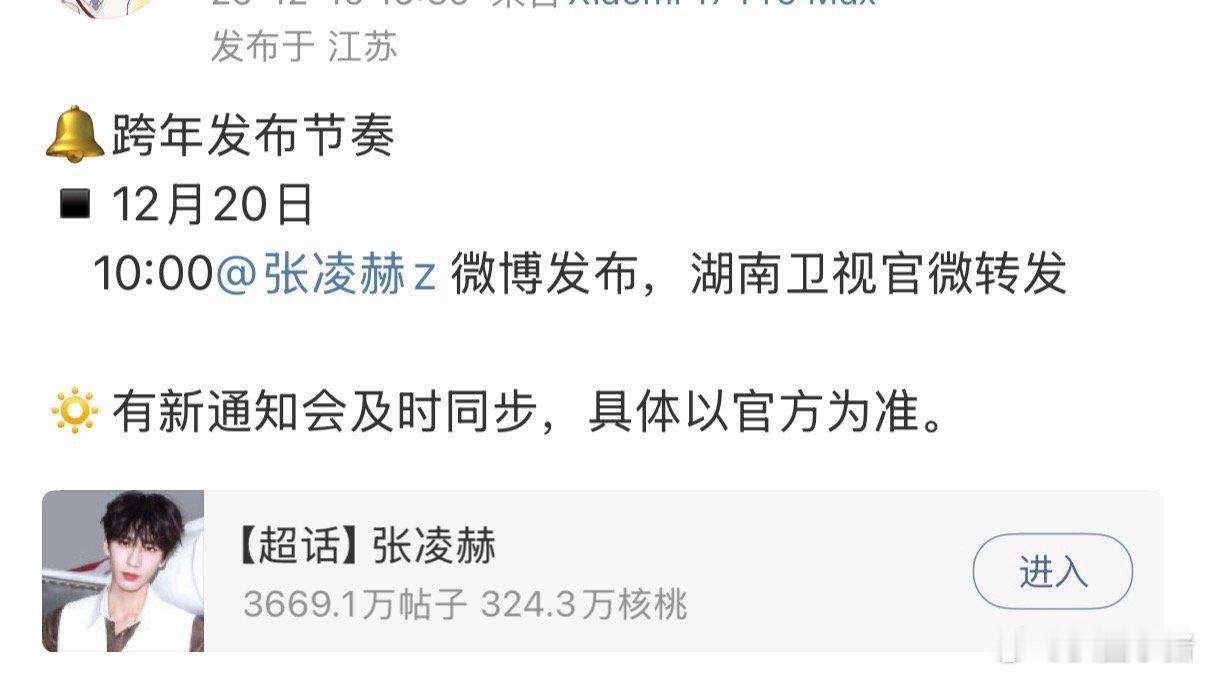 张凌赫确认参加湖南卫视跨年演唱会!期待大帅哥的舞台