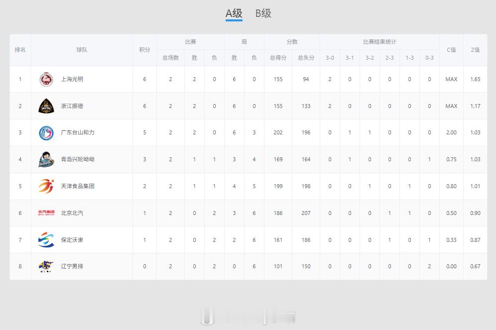 2025-2026赛季中国男子排球超级联赛A级第二轮后积分榜排名排超联赛2025-2026中国排球超级联赛