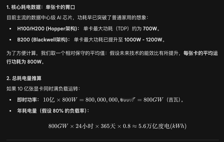 小鹏说未来大公司的特征之一,是有10亿张卡,按现在卡的功耗算,10亿张卡的年耗电量>5万亿度。啥概念呢,这些卡的年耗电量超过当前美国全国年用电量。这太疯狂了,不是一般国家可以应对的。比如说,在北美,公共电网老化,但扩容审批却需要 5-10 年,AI公司心想这哪耽误的起,于是开始建/买核电站,自己给自己供电。微软与 Constellation Energy 签署了一份为期 20 年的协议,重启位于宾夕法尼亚州的三哩岛核电站 1 号机组,专门为微软提供电力;甲骨文在 2024 年底的财报会上公开表示,他们已经拿到了在数据中心现场建造核反应堆的许.......AI的尽头是电力。我们现在的电力工业规模已经大幅超过美国。我们有超过3万公里的“电力高速公路”——特高压输电线路、有全球最牛的光伏产业、有超过 100 台在运及在建核电机组、在建大概是三个“三峡”的雅下水电站等等。如果咱们的模式满足不了AI时代的电力需求,那就只能指望可控核聚变落地,或者把光伏发电+算力中心用火箭发射到近地轨道了~