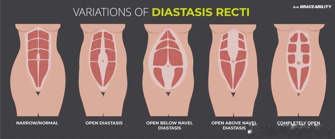 92年宝妈产后腹直肌严重分离 看到这个话题,和大家从康复的角度讲讲【腹直肌分离】,明白其中原理,也能更好避免训练误区⚠️01【什么是腹直肌分离?】由于怀孕期间,我们的腹部肌肉长时间的被过度拉伸,导致产后不能主动修复,腹部中间出现一个空隙,这种情况就是我们说的腹直肌分离。如果从解剖的角度详细分析,我们左右两块腹直肌其实并不是无缝连接在一起的,有肌鞘包裹着,而在左右腹直肌之间的便是腹白线。所以腹直肌分离只是一个表象,实质上是因为腹部向外的压力过大,腹横肌和腹内外斜肌受到过度牵拉,导致其筋膜交接点腹白线受到损伤,因而腹直肌离开了原有的腹直肌鞘。02【腹直肌分离类型】不同的人,腹直肌分离的类型也不同。一般类型有下面四种:a. 开放型腹直肌分离b. 肚脐下腹直肌分离c. 肚脐上腹直肌分离d. 全开放型腹直肌分离03【如何自我检测】因为腹直肌分离存在不同类型,所以在腹直肌分离测试中需要在腹部不同位置进行:上腹部区、肚脐区、下腹部区。仰卧屈髋屈膝,轻微的卷腹动作。此时,腹直肌正在用力处于绷紧状态,分别检测上述三个位置。图4✅我们先用食指、中指、无名指往下按压,如果我们的手指可以轻松陷入腹直肌,同时能明显感觉到腹直肌往两边滑动开,可触及两侧腹直肌之间有明显纵向凹陷深沟,这种就是腹直肌分离了。⚠️注意因为每个人的手指粗细不同,经验上用手指来检测腹直肌分离的宽度,然而临床上诊断腹直肌分离是用厘米来检测的。⏱️正常在肚脐位置的腹白线最宽为2cm,>2cm为腹直肌分离。然而如果是两指,粗手指的人腹直肌分离宽度大于2cm,而细手指的人腹直肌分离宽度小于2cm,这是腹直肌分离诊断的分界线。04【腹直肌分离的禁忌训练】‼️‼️‼️由于腹直肌分离的本质原因是深层核心肌肉——腹横肌无力,无法稳定躯干。在腹直肌分离>2cm时,任何孤立的训练腹部浅层肌肉(腹直肌、腹内斜肌、腹外斜肌)都是腹直肌分离的禁忌!常见的腹部训练的三大动作有:卷腹、扭转、平板支撑。❌01卷腹卷腹运动不适合腹直肌分离人群的原因:a. 孤立的训练——卷腹只训练到了腹直肌,并没有训练到深层核心腹横肌。b. 腹内压增大——卷腹时腹内压增大,当深层核心腹横肌无法稳定整个腹腔时,做卷腹时整个压力都集中到了腹直肌上,腹直肌和腹白线张力再次变大使腹白线持续受损导致腹直肌分离越来越严重。c. 加重腰椎压力——卷腹动作要求腰椎紧贴地面,由于腹部无力,为了完成动作,做卷腹时腰椎会跟着弯曲,增加了腰椎间盘的压力,容易造成腰突风险。❌02扭转与卷腹相同,由于扭转主要训练的是腹内外斜肌,当腹横肌特别无力时,进行扭转训练时腹内压增大直接把压力集中在了腹白线上导致腹直肌分离越来越严重。❌03平板支撑平板支撑不适合腹直肌分离人群的原因:a. 重力——俯卧位的平板支撑,在深层核心腹横肌无法稳定时,由于重力原因腹部下坠,腹白线再次被拉伸,造成再次损伤。b. 加重腰背疼痛——当腹部深层核心无法稳定时,身体会往下掉,为了维持身体稳定,腰背部竖脊肌会过度发力,导致腰背部肌肉紧张,长时间造成疼痛。ps:当腹直肌分离≤2cm时,可以在专业人士指导下逐渐进行低阶的核心训练。健闻登顶计划运动康复