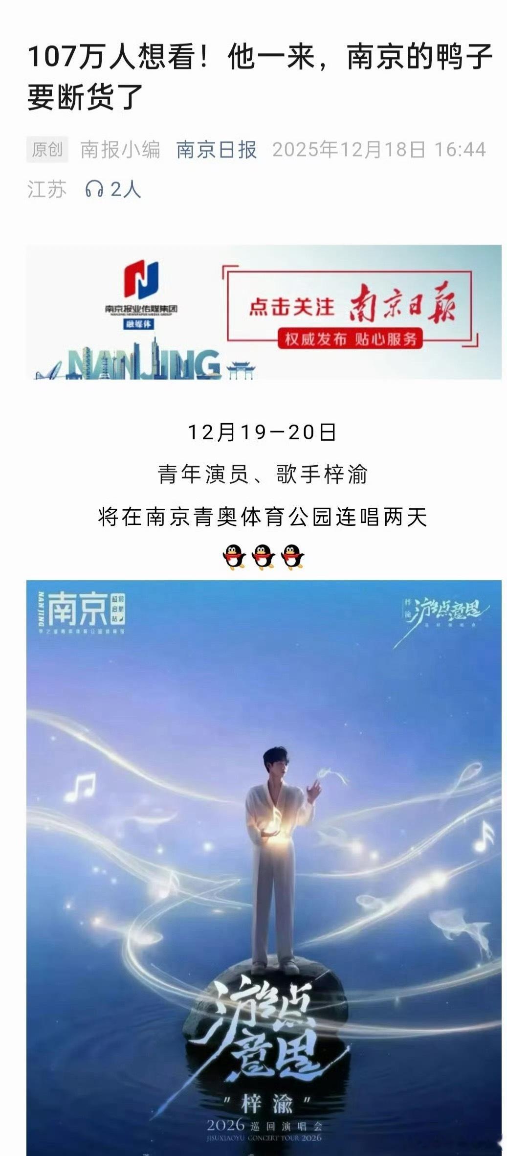南京日报发梓渝官媒播报了梓渝,这个梓渝实火!顶流来着!今天明天,我可以很确认的说