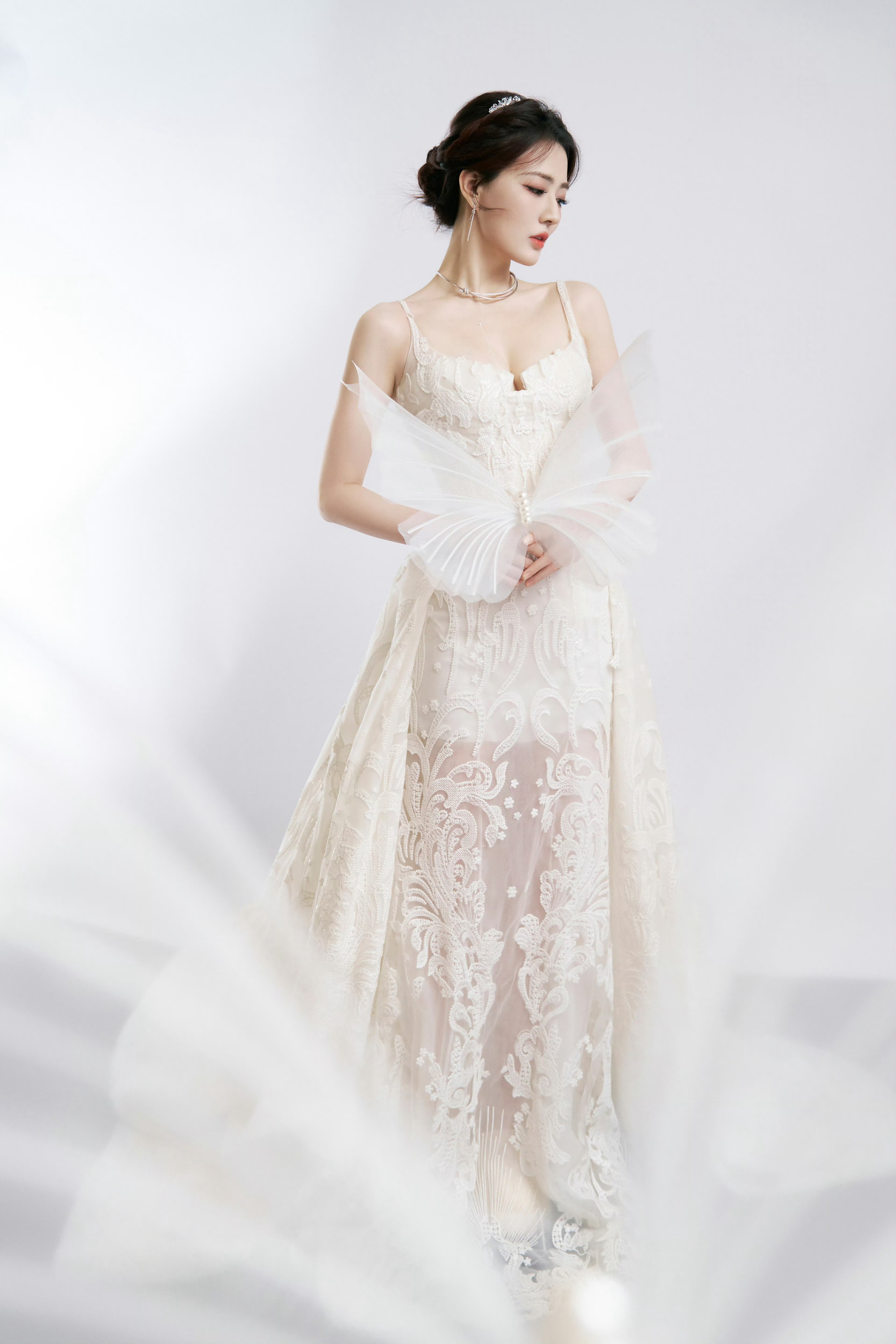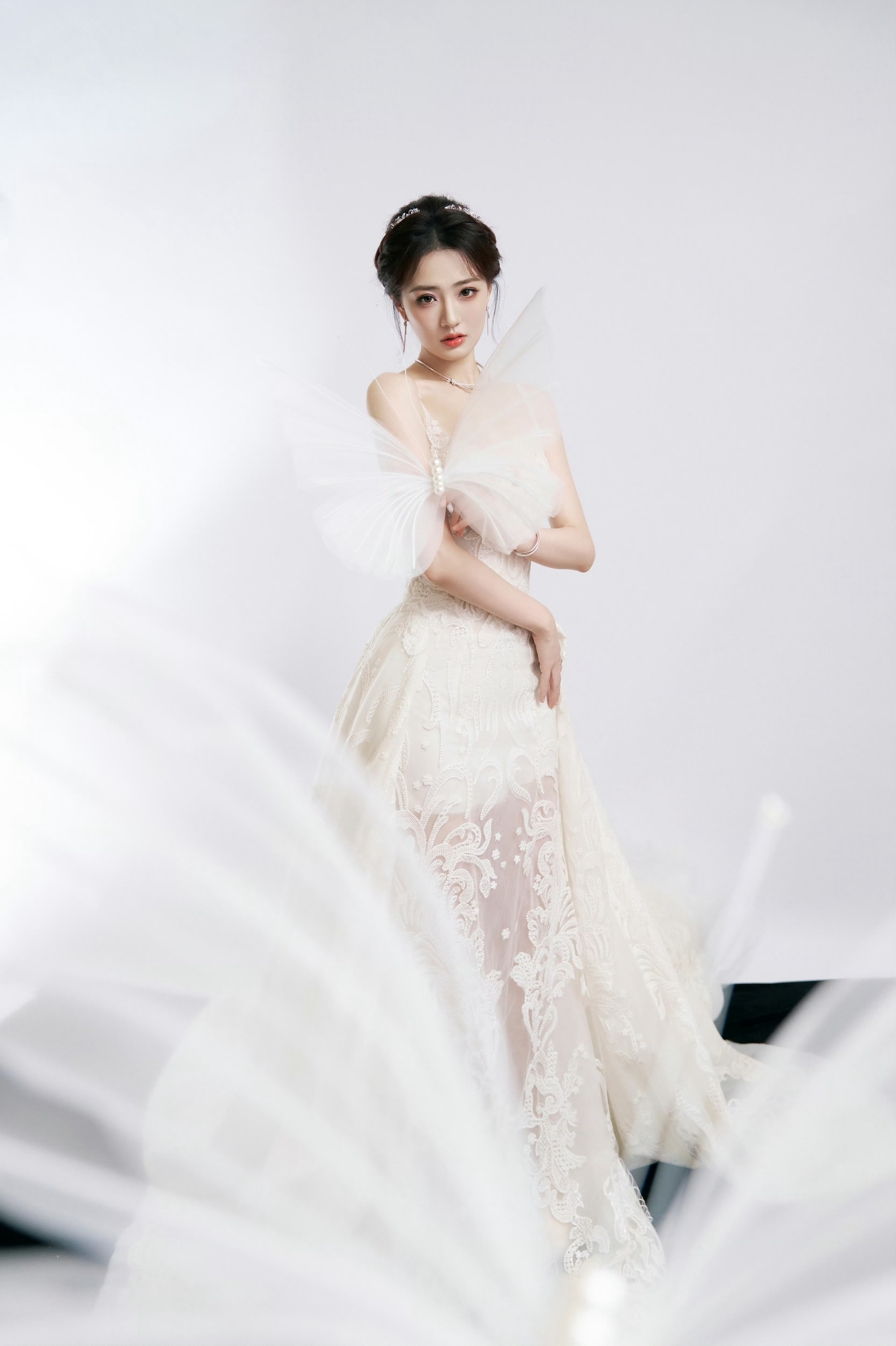 徐璐吊带白纱裙造型 徐璐这组白纱裙大片直接美出仙品!蕾丝雕花裙身勾勒曼妙曲线,薄纱羽翼衬得肩颈线条愈发精致,发丝轻挽露出灵动眉眼,清冷白调里揉进几分娇柔,像坠入凡间的白翼精灵,一颦一笑都撩动心弦~