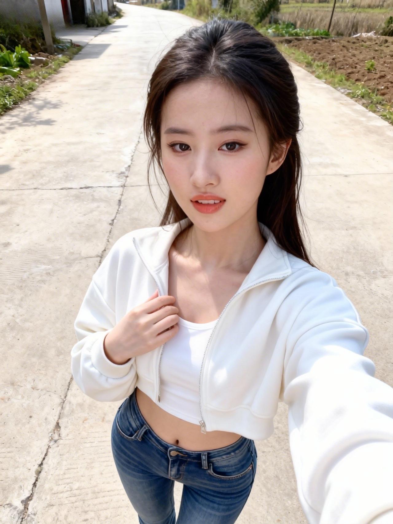 阳光下的清新自拍,白色外套搭配牛仔裤,元气满满的一天!🌞💕女生的大长腿究竟是优势还是劣势? 有哪些90后美女 大美女才女还怕没有人爱吗?