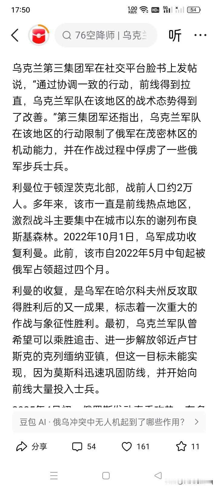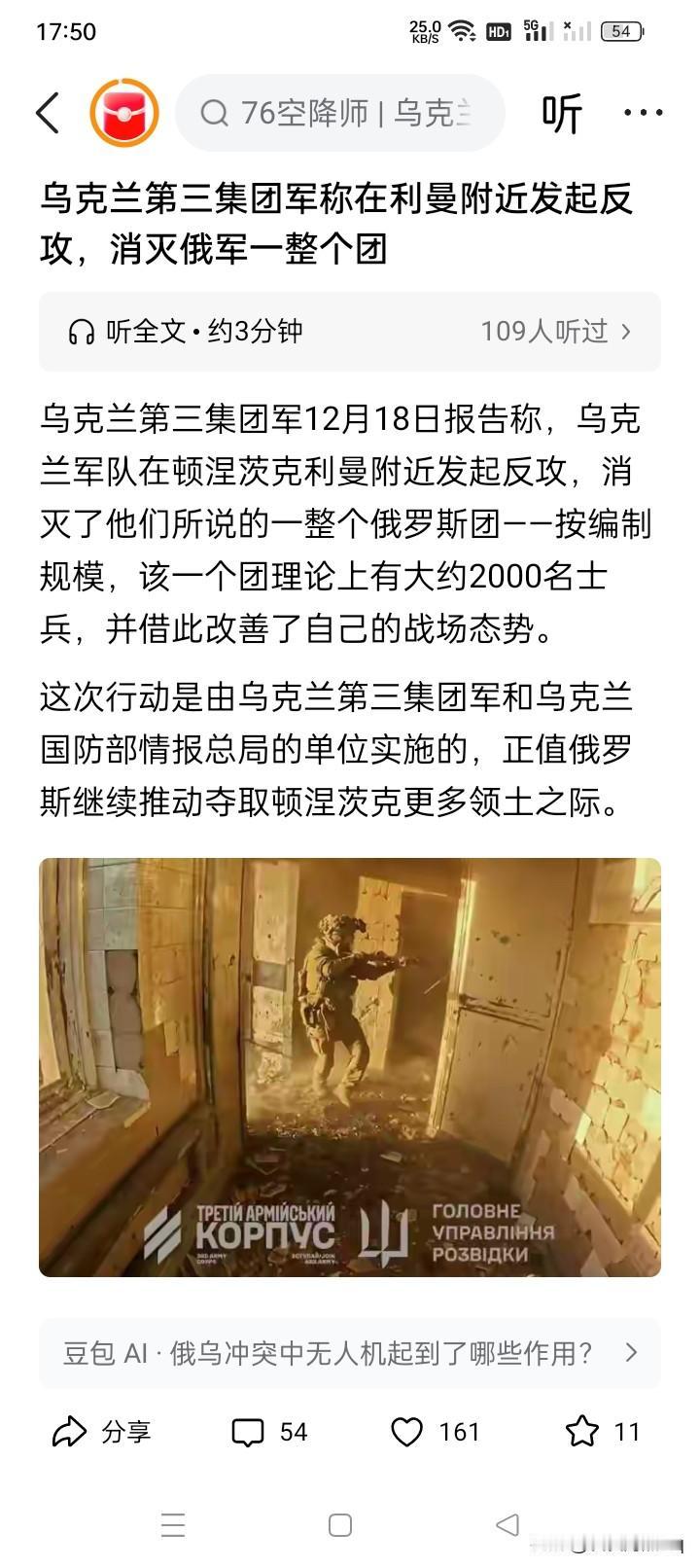 突发惊天消息? 在整个乌克兰的战争中,几乎好像从来没有互相消灭整团整旅军队的情况,甚至是消灭一个整营的情况也十分罕见。但是,12月18日,乌克兰的第三军团宣布,似乎说乌克兰军队在顿涅茨克的利曼战场上,消灭了俄罗斯军队的一个成建制的陆军团。 一个团可能差不多2000名士兵,虽然各种不同的团人员编制有很大的区别,但至少也应该是不低于1000人。 如果真的发生了乌克兰军队消灭俄军一个团的事情,估计说明俄军在顿涅茨克战线的情况似乎很不妙,也可能是战争中的一个新的迹象。