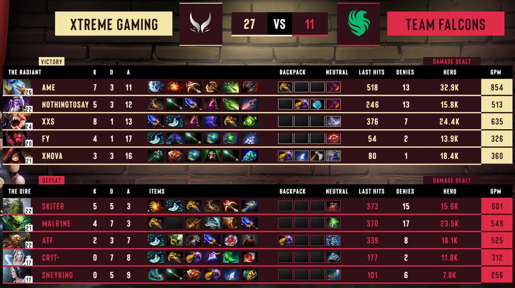 XG凭借装备成型凯的恐怖输出团战碾压FLCN赢下第一局,这把法尔空阵容爆发严重不足,中期还能靠团队装撑住正面,但后期成长乏力导致两边团战完全不再一个档次,最终变成了哥哥鸟人乱砍的爽局