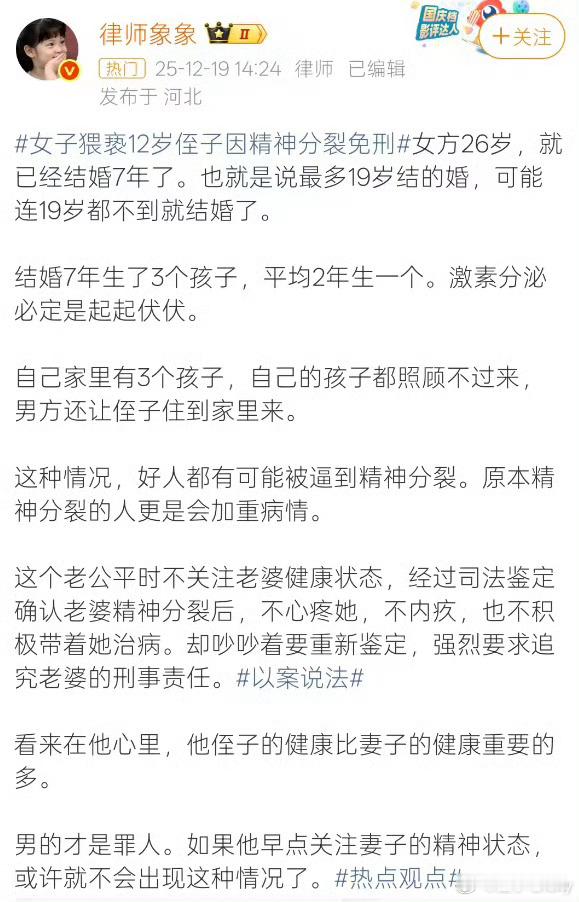 女子猥亵12岁侄子因精神分裂免刑所以你看,有些人的“普世价值”真的就是给自己谋求