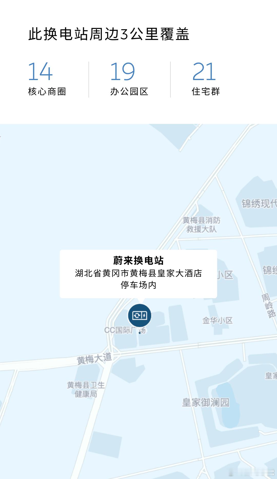 换电站是电动车的加油站蔚来换电站 | 金华缤谷城市运动中心 上线周边3公里覆盖4大核心商圈、26大办公园区、57大住宅群截至12月19日,蔚来已在浙江省布局473座换电站蔚来换电站 | 黄冈黄梅皇家大酒店 上线周边3公里覆盖14大核心商圈、19大办公园区、21大住宅群截至12月19日,蔚来已在湖北省布局131座换电站,在全国布局3629座换电站蔚来换电去哪都方便