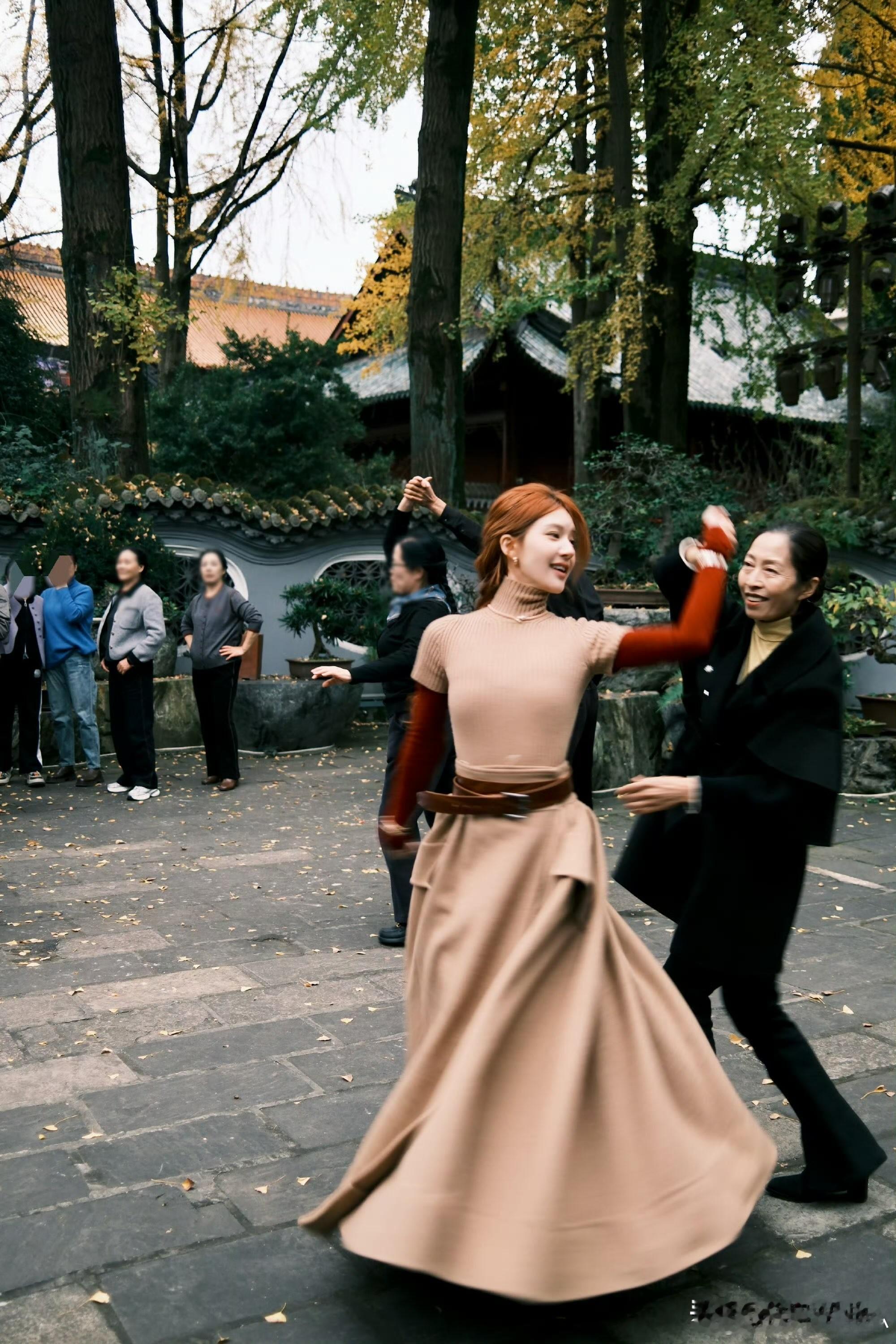 12月19日,赵露思在公园跟大爷大妈们跳舞在她的脸上久违的看到了笑靥如花!秋冬肉桂色系上紧下宽的叠穿真的很好看!赵露思很像平行时空里《小王子》里才有的小公主,白皙透亮的脸颊搭配金棕色长卷发,充满了古典优雅气息,漏肩造型更像是初到这个世界的探索,像蓝色大海的传说里的全某贤,赵露思这样的妆容很漂亮最适合她!赵露思