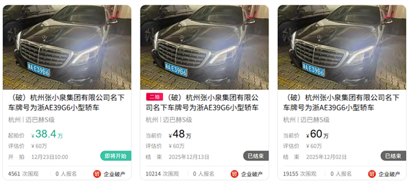 张小泉集团名下迈巴赫S400将被拍卖:降到38万元,此前已流派两次