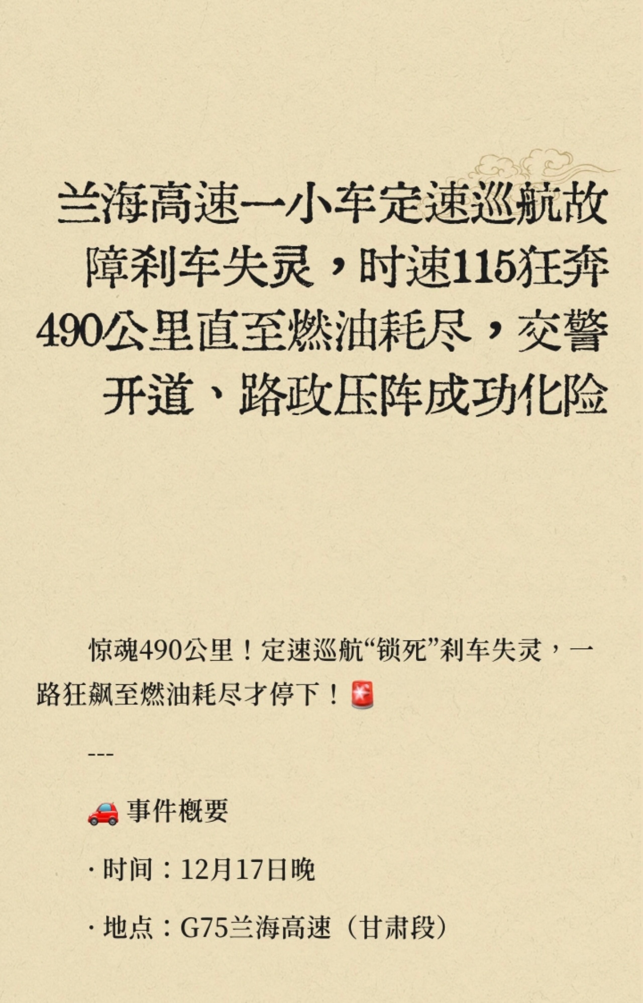 刹车失灵狂奔490公里司机发声上次是BC,这次是BT,这是啥情况?有没有专业人出来解释一下,真有这种情况发生吗?虽然我没有遇到过,但是真遇到了,有没有更好的办法解决这样的问题?直接熄火行不行?或者说不是有那个大型车刹车失灵,有紧急避险道吗?开进去不行吗?狂奔490公里太危险了!!!