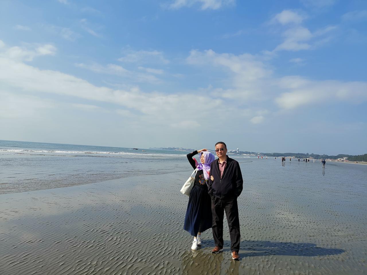 《防城港印象》 黑沙白浪江山裁,南北小吃步行街。 海角风清云起舞,西南门户客长谐。 防城港的白浪滩堪称一绝,黑色沙滩在国内少见。沙子富含钛矿,呈黑褐色,据说还有防晒美白功效,好多游客会挖坑把自己埋进去享受天然美白。白浪滩呈三角形,最宽约2.8公里,最长约5.5公里,地处江山半岛,白浪拍打着黑沙,可谓“黑沙白浪江山裁”。 此外,防城港还是个美食聚集地,南北小吃在步行街汇聚,满足各种口味。这里年均气温22度,森林覆盖率达59%,空气好,水质优,富氧离子高,宜居康养,房价物价还便宜,难怪很多北方人都来此越冬定居,不愧是“西南门户客长谐”。