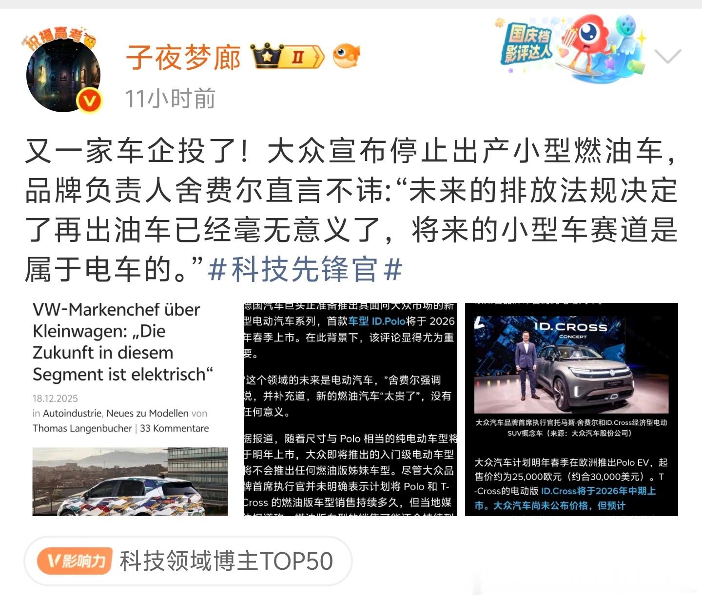 不是德国人有眼光,就是看到中国市场a0和a00级别都被纯电荡平了,油车根本没有生存空间 a0级仅有三款油车全部是行将就木的垫底销量自己的POLO也是下一个飞度罢了