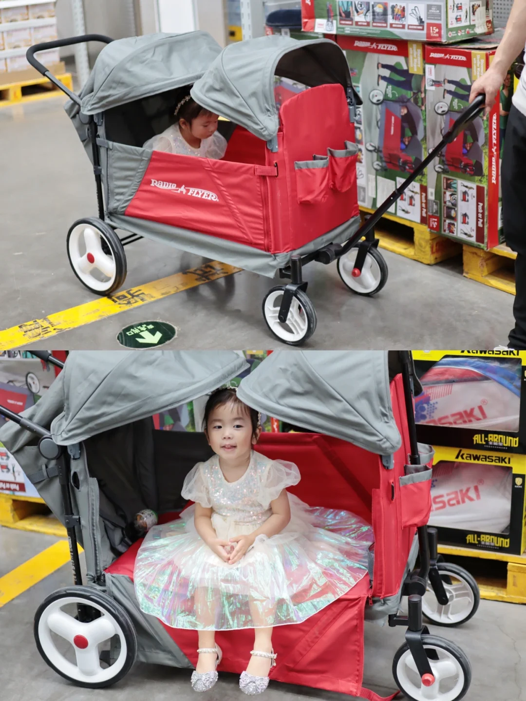 这次逛山姆的时候就正好看到它!简直是我们的梦中情车!🉑️以带娃也可以带物,双遮阳篷,不惧风雨和太阳,还可以拆卸下来噢~侧边拉链设计,随时变身长凳,推着孩子出门玩到哪儿玩不担心没位置坐了,哈哈😄里面还有专为宝宝设计的贴心安全扣,宝宝待在里面敲舒服,喜欢的不得了😘