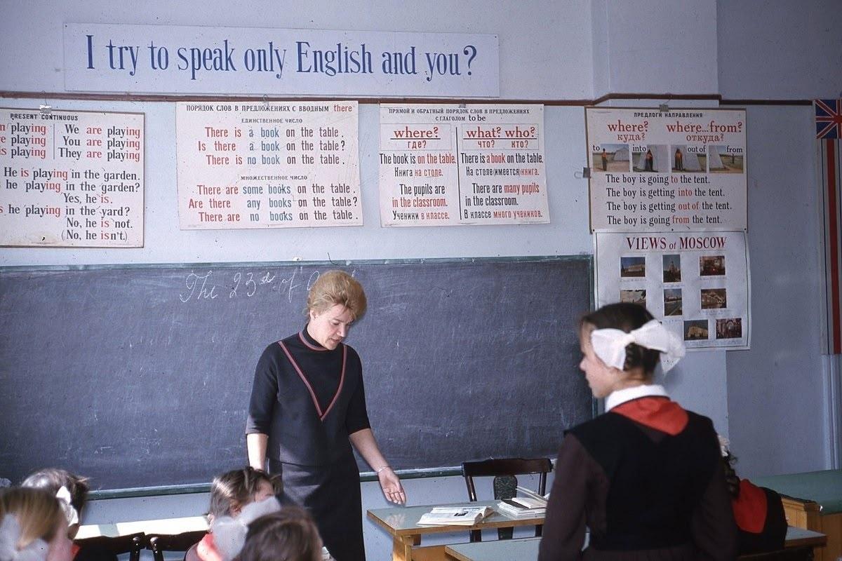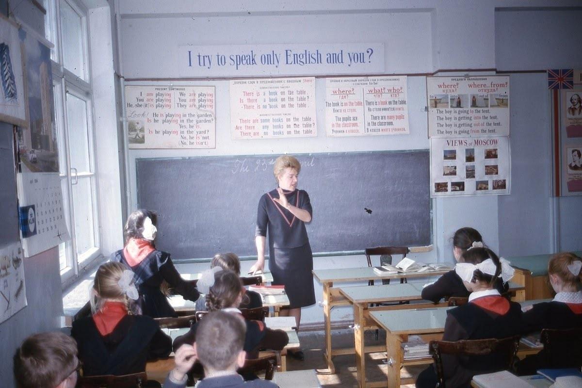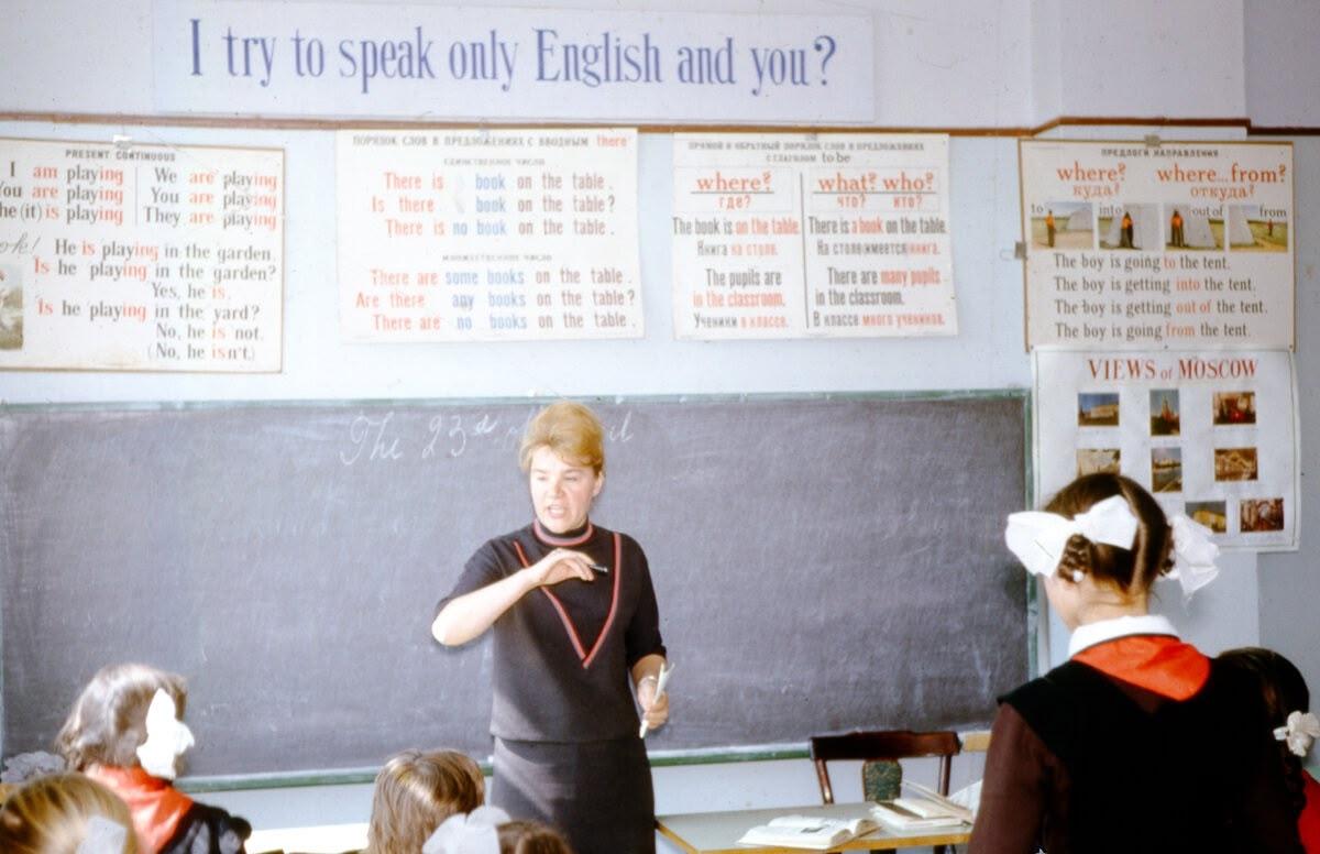 苏联时期的英语课有鲜明时代特色,多从四或五年级开设,属重点学科。教学以传统教材为核心,搭配黑胶唱片、磁带等教具,侧重阅读、翻译与词汇记忆,后期逐渐强调交际实用。部分特殊学校水平较高,甚至用英语讲授数理等科目。教材带有时代印记,融入日常场景与社会元素,虽缺乏多元语言环境,却为学生打下扎实基础。