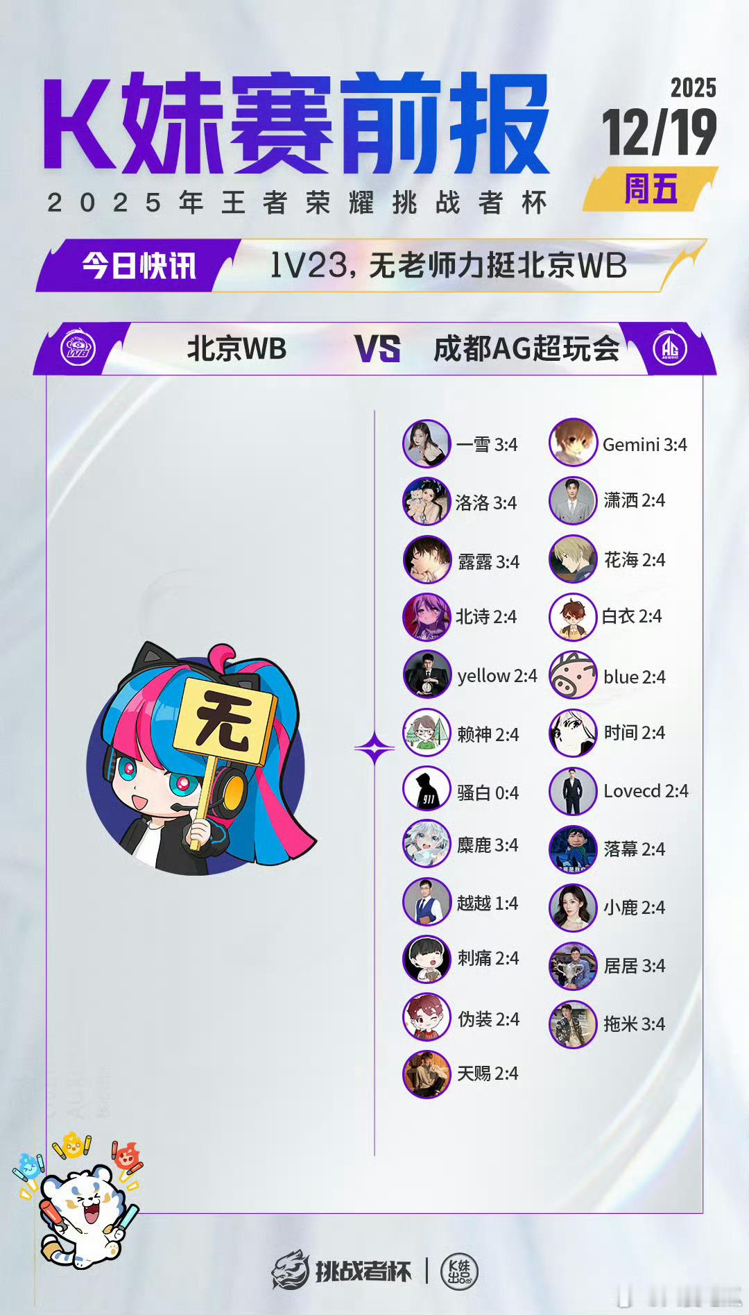 【AG回应不敌WB,AG掉入败者组】12月19日,2025年王者荣耀挑战者杯·双
