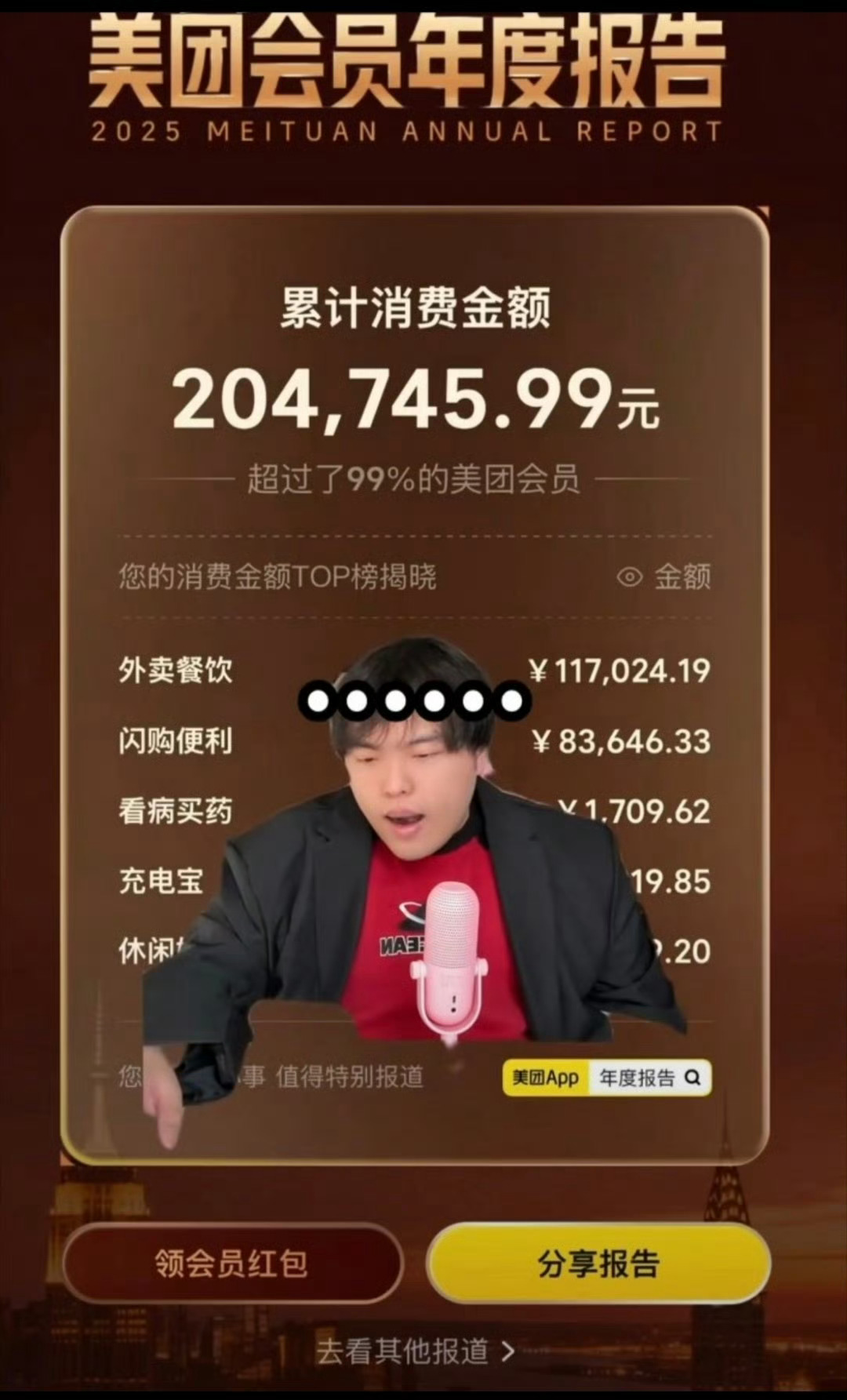 桃黑黑美团吃了20w 我滴个乖乖!年度最离谱外卖账单出现了!一年20万,很好奇他都吃的啥?他是不是一日三餐都吃外卖,换我三天就腻得慌,他到底是怎么坚持下来的?