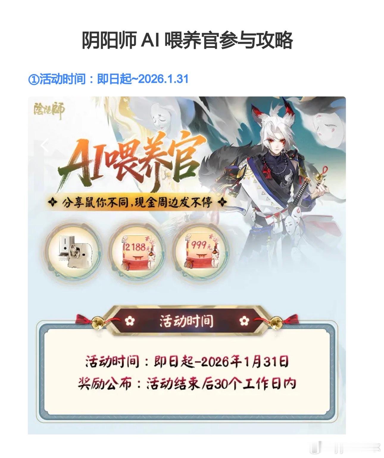 阴阳师手游超话创作官acg优创官 推推大神新活动,评论区给大家抽1个花合战【阴阳师】保姆级AI养成官玩法攻略■活动时间:即日起至26年1月31日■参与活动薅羊毛活动🔗附评论区 抽奖详情