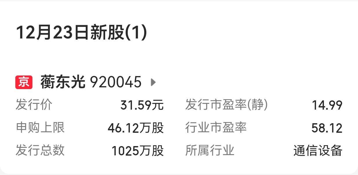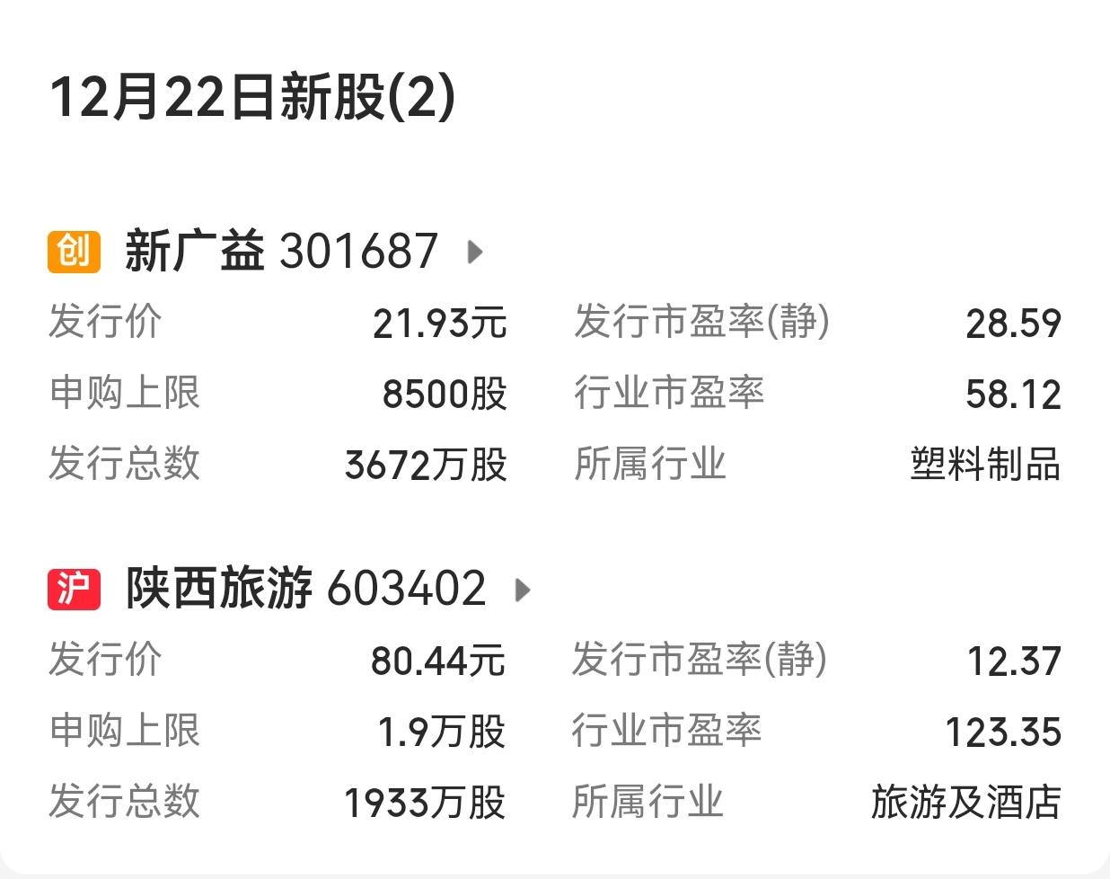 【12月第4周:A股市场有3只新股申购】 12月第4周(12月22日至12月26日)A股市场将迎来3只新股申购。其中创业板、沪市主板、北交所各1只。 发行时间安排:周一2只、周二1只。 发行的相关事项因数据不全,请注意阅读当日相关公告。新股申购 新股发行