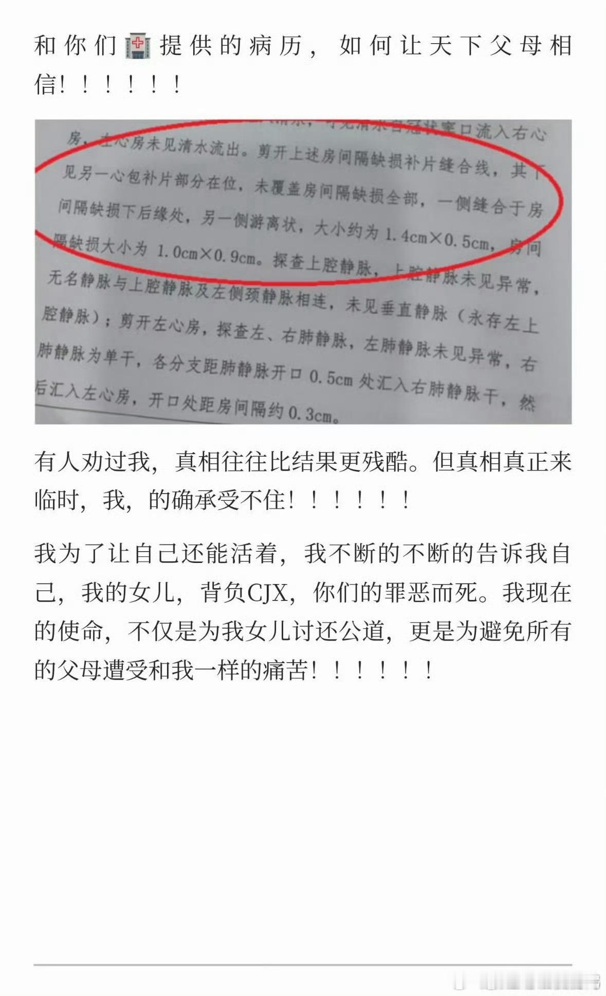 小洛熙真相 只有一个3mm房缺 据说js报告出来了 家属发了一部分 毕竟不是专业人士 还是等官方给个具体说明吧