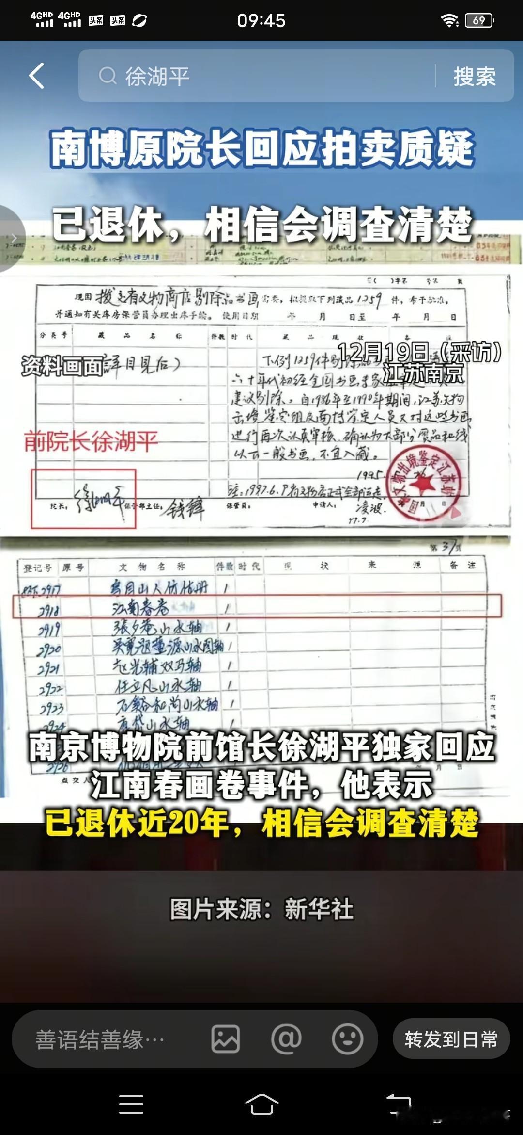 睁眼说瞎话, 难道真是年老糊涂啦 ? 古画鉴定为“假”在1961年和1964年, 时任南博院长曾昭燏已经去世, 但是调拨古画到文物店是在1997年,时任南博院长徐湖平现在还活着 。 古画调拨单上“院长”签字栏里面有“徐湖平”的签字。 记者联系上南博前院长徐湖平, 他说他80多岁了,生病在家,2008年退休以后所有的外界的事情我都不参与了,省委已经决定成立工作组了我们这些人不好说三道四,而且我也不了解情况,这个事情也不是我经手的, 我也不是书画鉴定家。 (素材来源,正在新闻 ) 有徐湖平的亲笔签名 , 实打实的证据说明这个事儿徐是知道的,他是同意的,却说不是他经手的,这是赤裸裸的谎言。 看看我生病了,我80多岁了,退休以后我都没有跟外界再来往 ,这是把自己摘的一干二净。 真佩服,80多岁了,思维还这么敏捷。 现在古画这事还有唯一的悬念,就是没弄清在文物店买走古画暑名“顾客”的这个人究竟是谁 , 他就是一个顾客的代名词还是这个人本身就姓顾叫“顾客”! 随着调查的深入,真相定会水落石出 。 但无论什么结果, 南博律师说的那句“捐赠了, 所有权就属于南博了”, 律师说的话从法律角度讲没问题,但对捐赠者庞家的后人来说确是扎心的伤害 ! 当年郭美美炫富, 红十字至今还没喘过气来 ;南博对捐赠者庞家后人过河拆桥的寒心态度,将对民间各行各业的捐赠 积极性带来毁灭的打击!