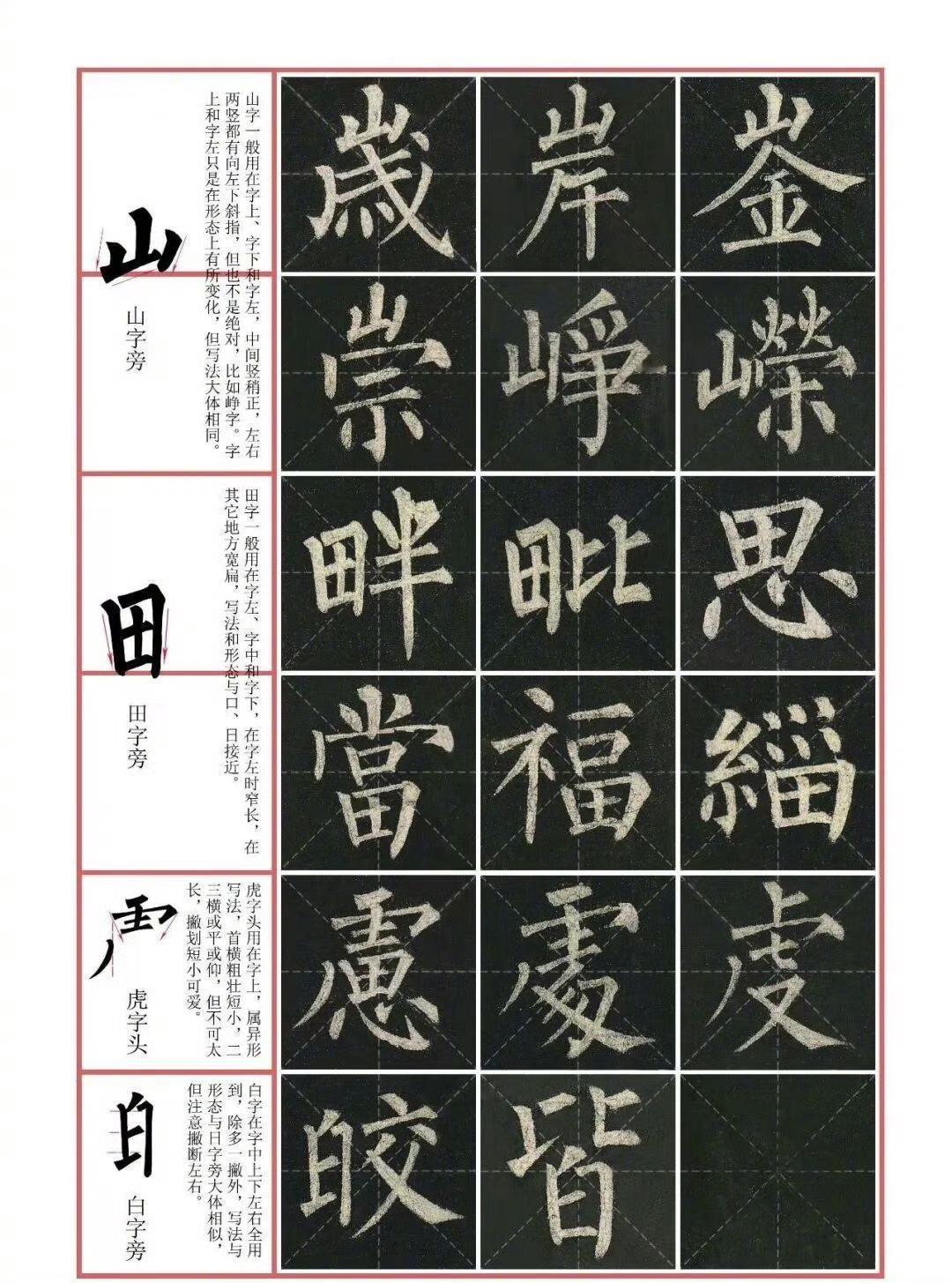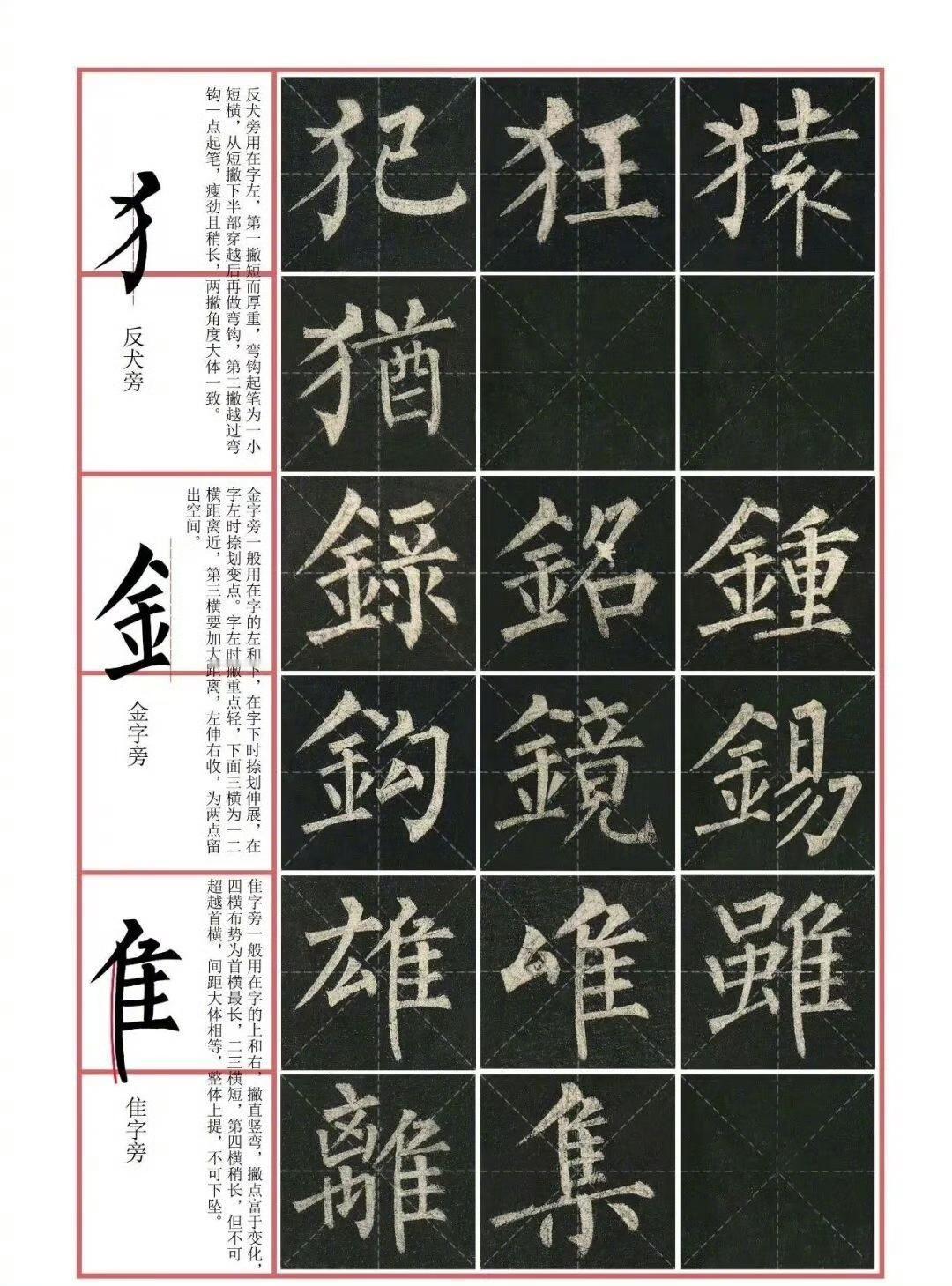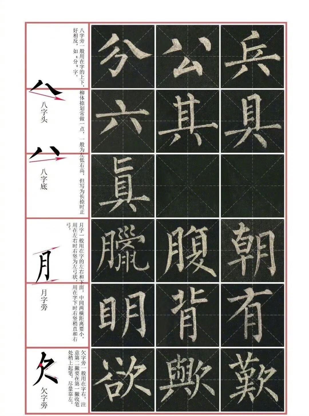 工具选择 - 毛笔:建议选用狼毫或兼毫,如“七紫三羊”,弹性适中,便于表现柳体的方笔锋芒。 - 纸张:初学可用半生熟宣或毛边纸,搭配九宫格纸辅助定位,帮助掌握中宫收紧的结构特点。 - 墨汁:浓墨稍加清水调和,避免洇墨导致线条绵软,以凸显柳体“乌黑发亮”的骨力。 笔法技巧 - 方笔起收:横画起笔如刀切,45°斜切入纸,收笔回锋饱满,长横中段略细,呈“粗-细-粗”的拱形。竖画起笔两次折锋,形成“双棱角”,中锋涩行,如“铁线”般瘦硬。 - 撇捺对比:撇轻捺重,长撇细劲如锥,捺画粗壮如“金刀出鞘”,捺脚锋利且下方微凹。 - 钩画带托:竖钩出锋前先向左挫笔,形成“鹅头钩”,横折钩外方内圆。 结构规律 - 中宫紧缩:字形呈倒梯形,遵循“四面停匀,八边具备”原则。如“国”字内部笔画密聚,主笔向外伸展,形成疏密对比。 - 对称与险势:左右结构字左收右放,如“林”字;上下结构字上覆下承,如“泉”字。重心略高,字势挺拔,如“帝”字上宽下窄,稳如宝塔。 - 章法布局:行列分明,字距均匀,单字大小错落有致。 基本笔画写法 - 点:逆锋向上落笔,随即转向右下重按作顿,须回锋收笔,稍顿后转向左上提笔离纸。 - 横:逆锋向左落笔,随即转向右下作顿,转锋向右铺毫,中锋向右行笔,转向右下重按作顿,稍驻,边提边转向左收。 - 竖:逆锋向上落笔,随即转向右下重按作顿,转锋向下铺毫,中锋向下力行,行至末端顺势轻顿,边提边往上折转,提笔离纸。 - 撇:起笔与竖画相同,转锋向左下铺毫,向左下力行,行至末端,顺势向左下用力出锋收笔。 - 捺:逆锋向左落笔,随即转锋向右下轻顿,顺势向右下徐行,边行边按,形稍弯,平向右提笔捺出。 初学者可先从基本笔画练起,再临习单字,最后进行整幅临摹。临摹时建议多观察原帖,分析笔画和结构特点,坚持练习,方能体会柳体的独特魅力。