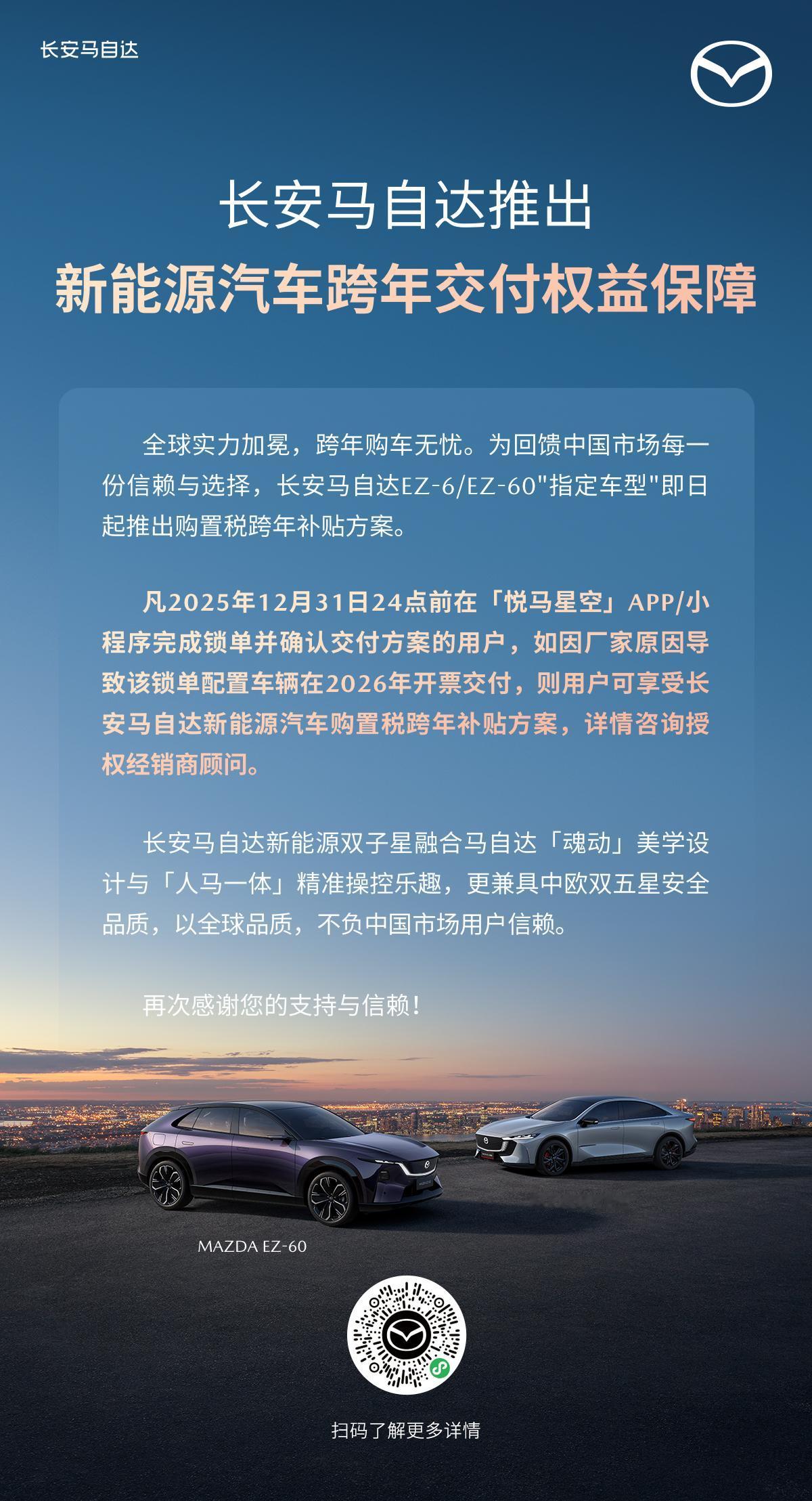 2025年底购车无忧,福利加码 长安马自达新能源汽车跨年交付权益保障 以全球品质