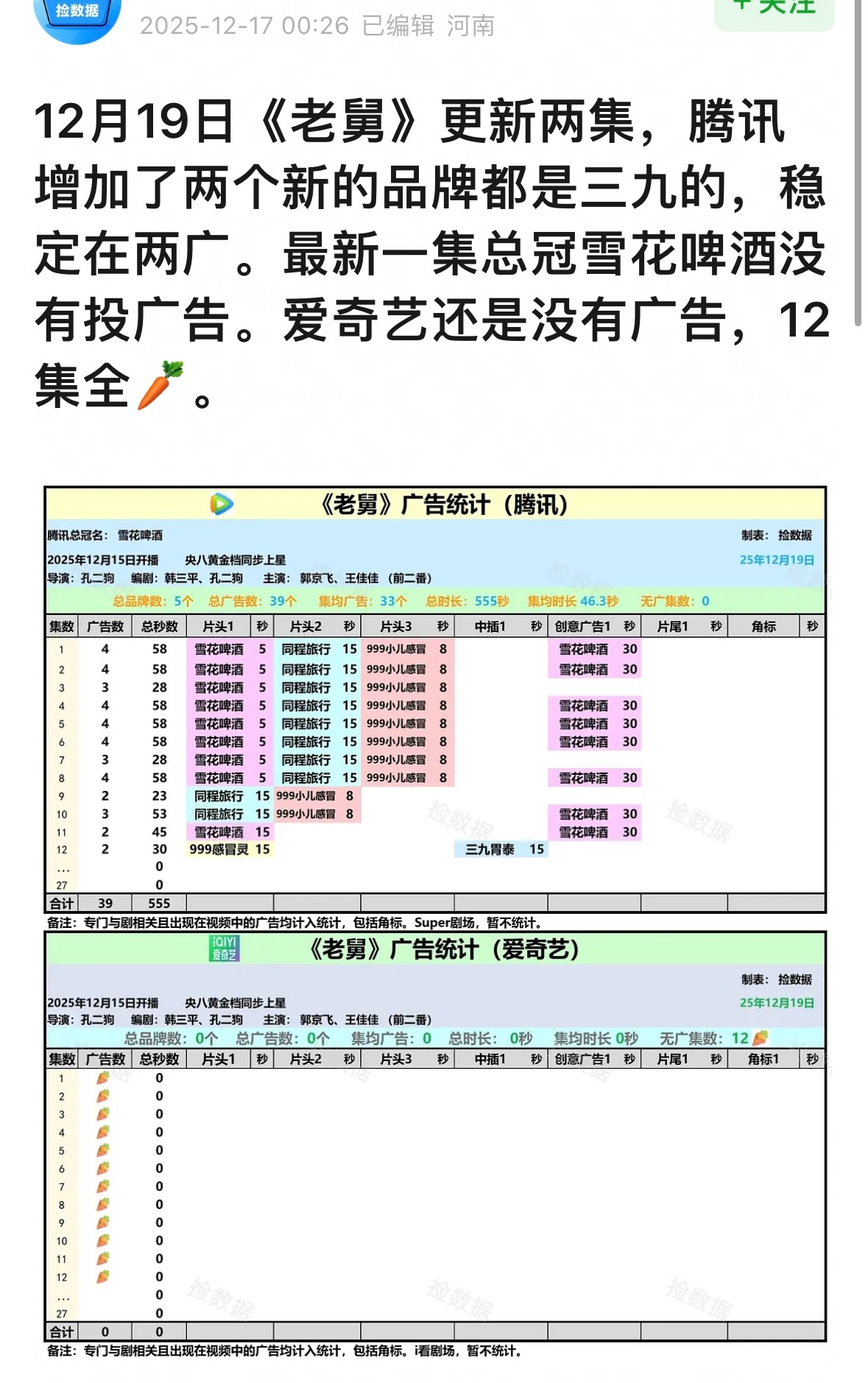 老舅这部其实有部分观众很吃这一套,郭京飞老师演窝囊废小市民那种出神入化的演技也挺多人爱看,抖推流切片点赞量都不低…所以就说老鹅你今年2025就是没这个命,有点苗头的也都分销了,桃这边招商都不操这个心