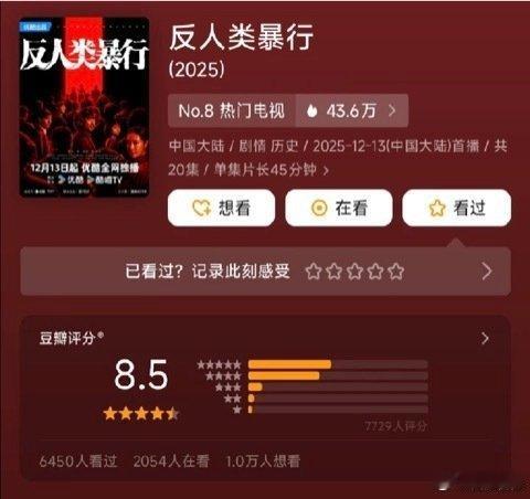 反人类暴行口碑这部剧开分8.5,镜头语言的暗喻很用心,电影质感在线,还紧扣真实历史。周末正好能一口气刷9集,上👖看。