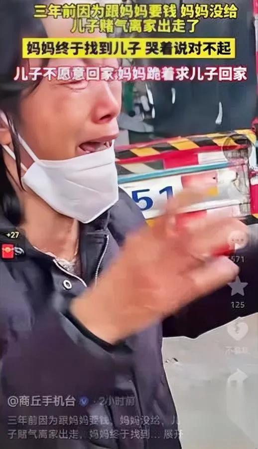 妈跪街头!儿子扭头就走 背后隐情让人心酸 三年前一句"没钱",让儿子摔门而去;三年后母亲跪地哀求,换来的却是儿子的冷漠。当亲情被沉默撕扯开裂痕,到底是谁的错?有人说母亲不该用下跪绑架孩子,也有人叹儿子不该对生养自己的人如此狠心。可谁又想过,当年那句"没钱"背后,藏着多少柴米油盐的无奈?孩子要钱时,又是否说清了背后的缘由? 亲情最大的杀手,从来不是贫寒或分歧,而是"话到嘴边留半句"的隔阂。妈妈们要知道,爱孩子不是满足所有要求,而是学会体面沟通;孩子们也该明白,父母的"不行"里,可能藏着说不出口的无能为力。 你觉得亲情裂痕该怎么修复?来聊聊