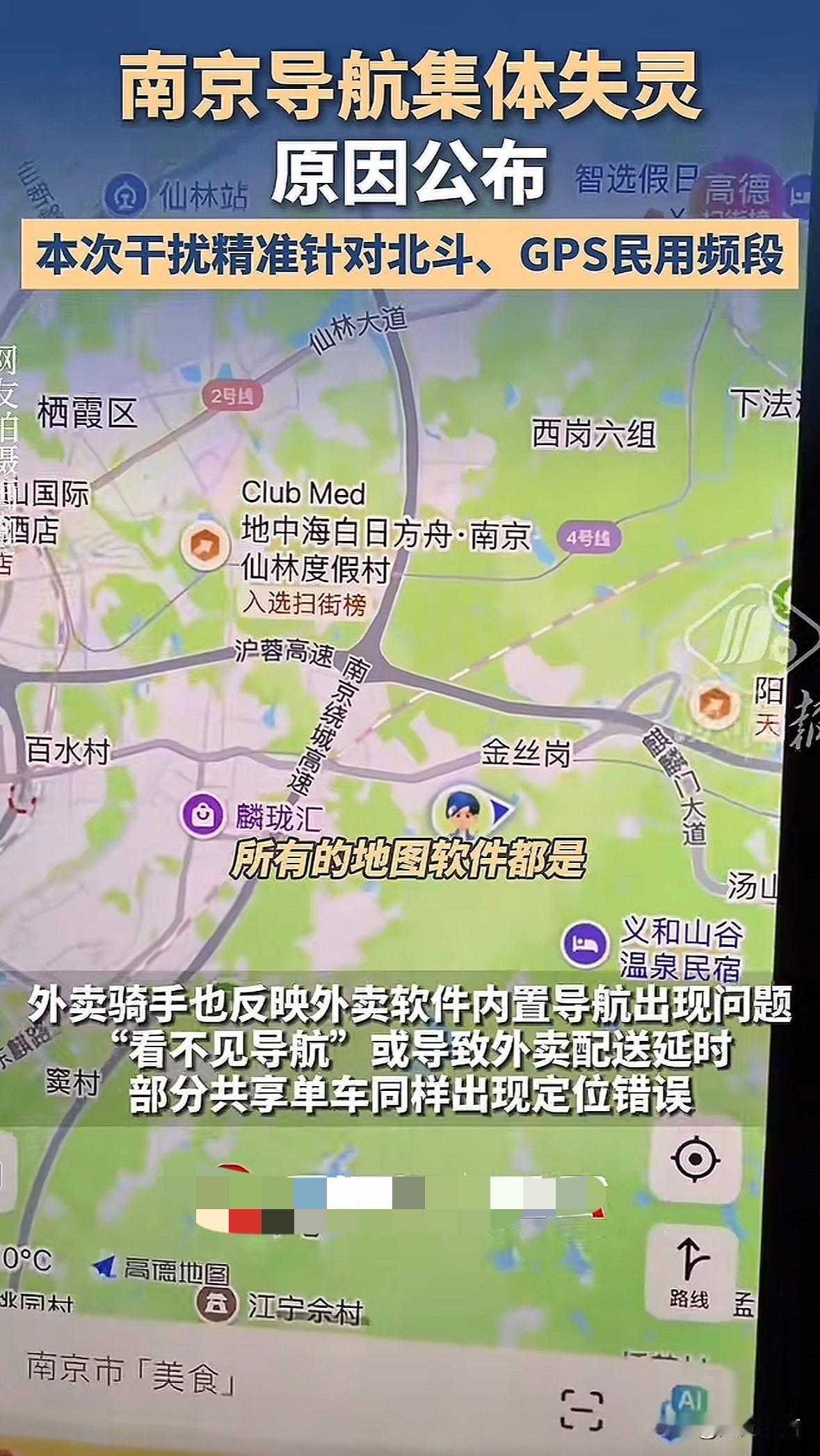 南京导航集体失灵原因来了,主要是信号受到了干扰,而且强调只是北斗、GPS民用频段,北斗军用频段完全不受干扰 本来一小撮人准备攻击北斗了,可他们的想法落空了,因为GPS民用频段也收到了干扰 目前还不知晓是谁或者哪个组织干扰的,但选择南京这座城市来干扰,背后是否有其他的考量也未可知 但有一点可以确认的是没有哪一个系统是百分百无漏洞的,只能说咱们的科技人员无时无刻都在关注和解决来自各方的干扰 所以一起唱衰,不如替我们的科技人员加油打气,毕竟地图导航失灵了,不方便的是普通人吧?