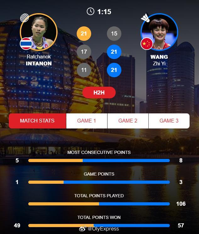 【羽联总决赛王祉怡2-1因达农 将与安洗莹争冠】2025年世界羽联年终总决赛 羽联超级赛12月20日杭州,2025世界羽联巡回赛总决赛女单半决赛,王祉怡以15-21/21-17/21-11逆转泰国老将因达农,将与韩国安洗莹争夺冠军。后者在另一场半决赛中以21-15/21-12淘汰日本山口茜。