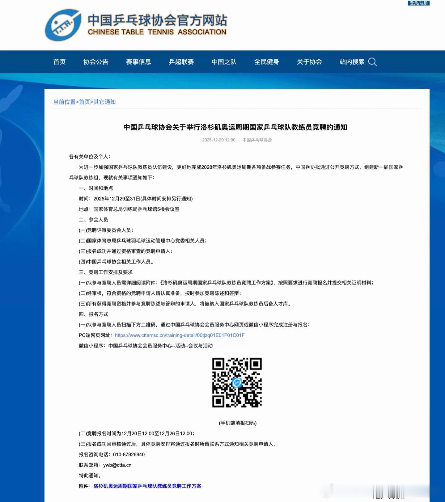 洛奥有男女双和混双,居然没双打组教练但感觉副总教练是负责双打的~这次竞聘工作将通过公开报名、资格审核、竞聘陈述和答辩、评审委员会无记名投票以及最终结果公示等环节,产生总教练1人、副总教练1人、国家队男女队主教练各1人、国家青年队男女队主教练各1人、国家队教练员12人、国家青年队教练员10人。评审委员会由中国乒协有关负责人、乒乓球项目专家、乒乓球项目科研人员代表、优秀运动员代表共同组成。国家体育总局乒乓球羽毛球运动管理中心党委派人对本次竞聘工作进行监督,确保竞聘工作严肃性、合规性与权威性。中国乒协启动国家队教练员竞聘工作中国乒协期待优化教练员队伍结构国乒将选出总教练