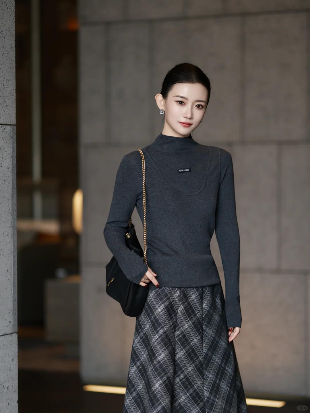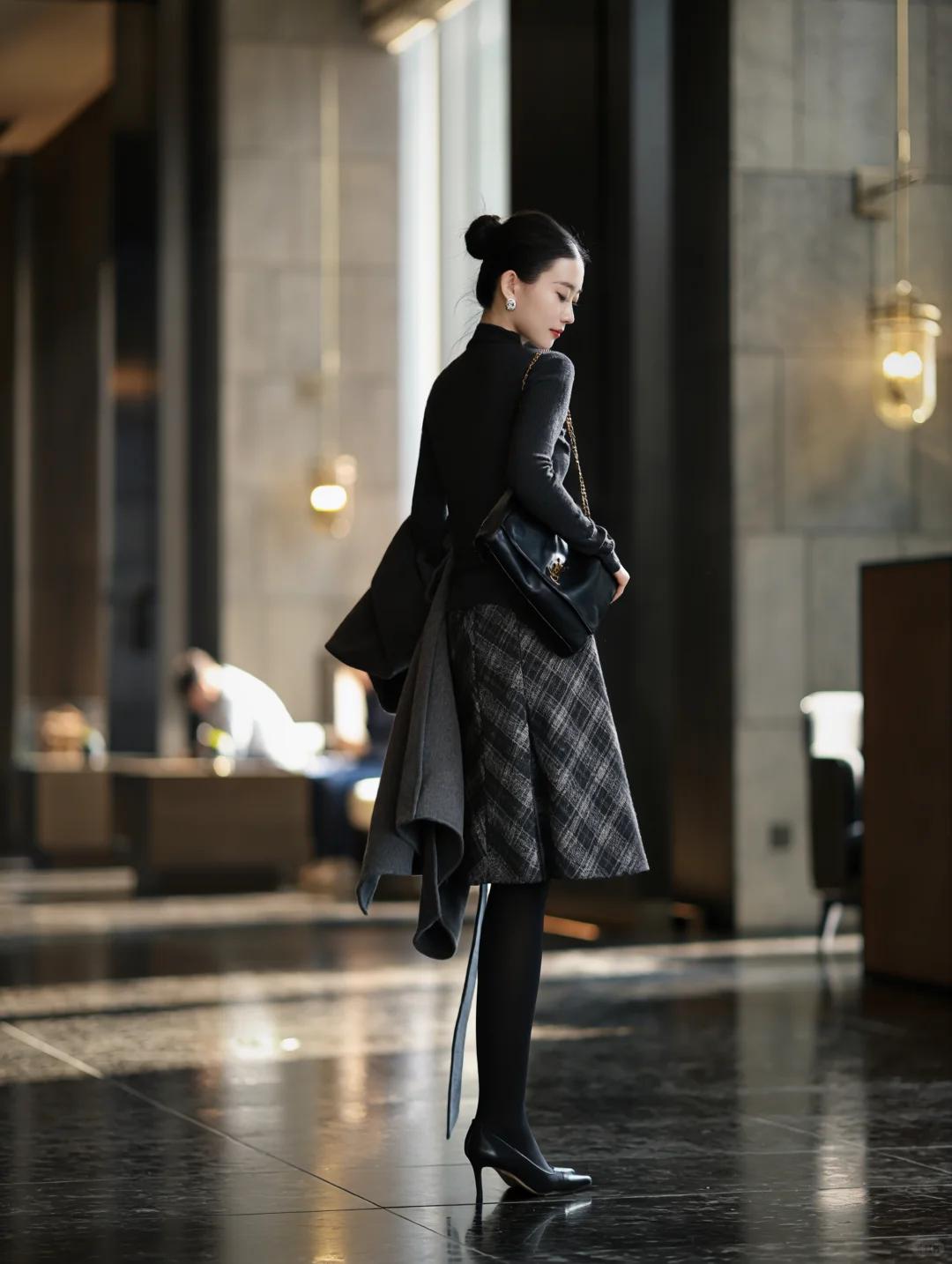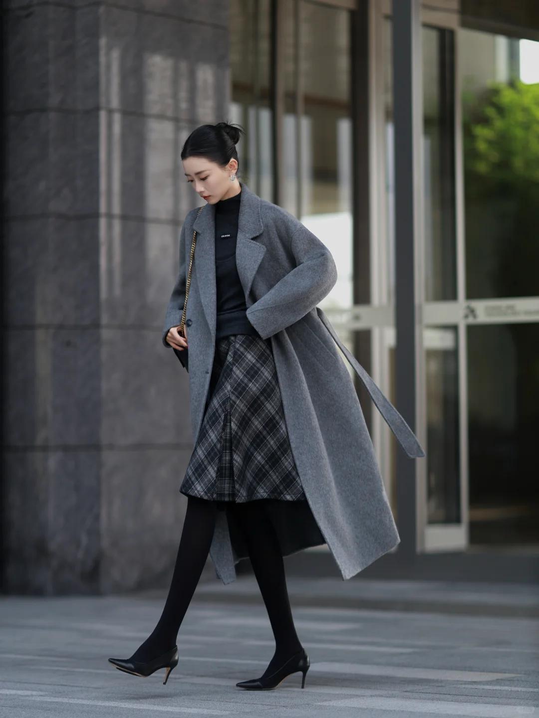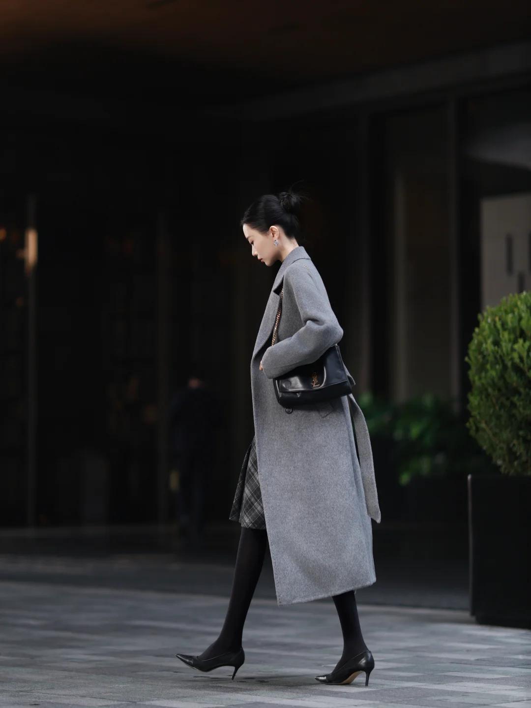 灰调秋冬,邂逅松弛诗意~ 今日解锁“灰调松弛感”穿搭,将惬意氛围感拉满。 浅灰大衣是主角,柔软面料裹住温柔,腰带随意一系,慵懒与利落完美交融,行走间,似与风共舞。 下身搭配格纹半裙,裙摆轻晃,细碎光影跳跃,为清冷秋冬添了几分精致。 这一身无需刻意雕琢,如同阴天里捧起的那杯热拿铁,不张扬却自带温暖质感。 它不仅是穿搭,更是一种生活态度,在忙碌日常里,予自己一份松弛与自在,让每一个平凡日子都泛着柔和的光。