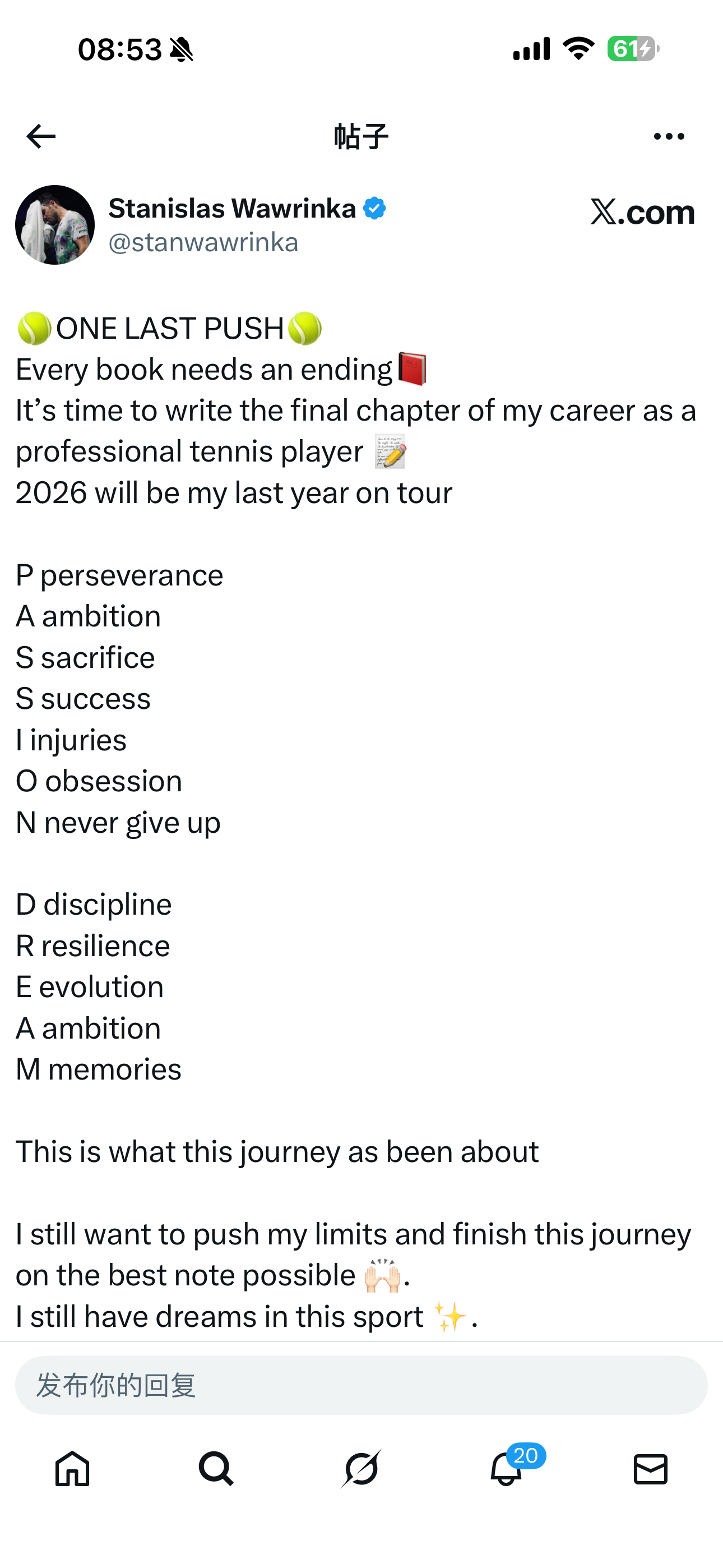 瓦林卡宣布2026赛季将是他最后一个赛季。Stan 也要退役了……